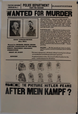 Hitler Wanted for Murder "See the Picture Hitler Fears After Mein Kampf?" Product Link