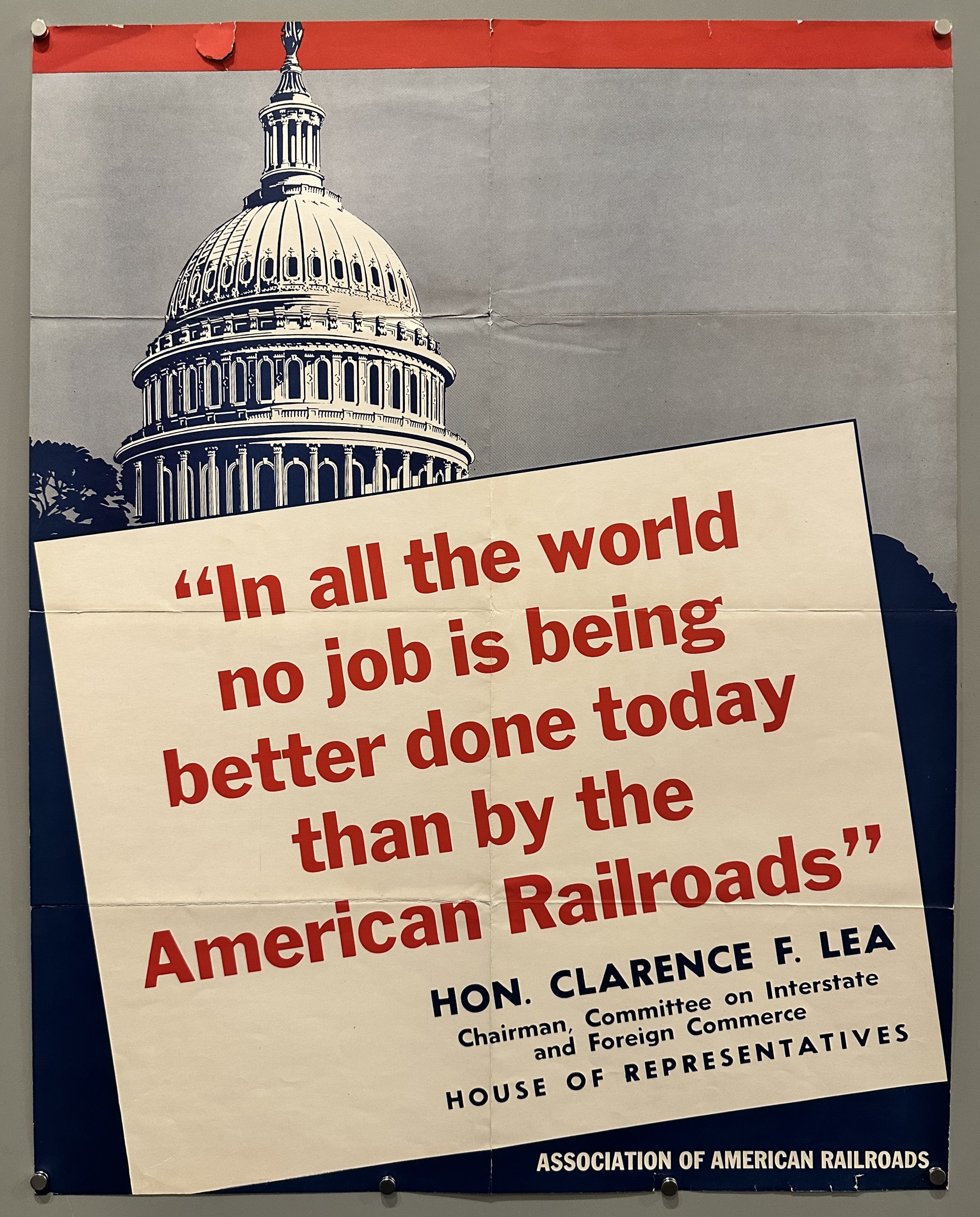 "'In all the world no job is being better done today than by the American Railroads' / Hon. clarence F. Lea / Chairman, Committee on Interstate and Foreign Commerce / House of Representatives / Association of American Railroads"