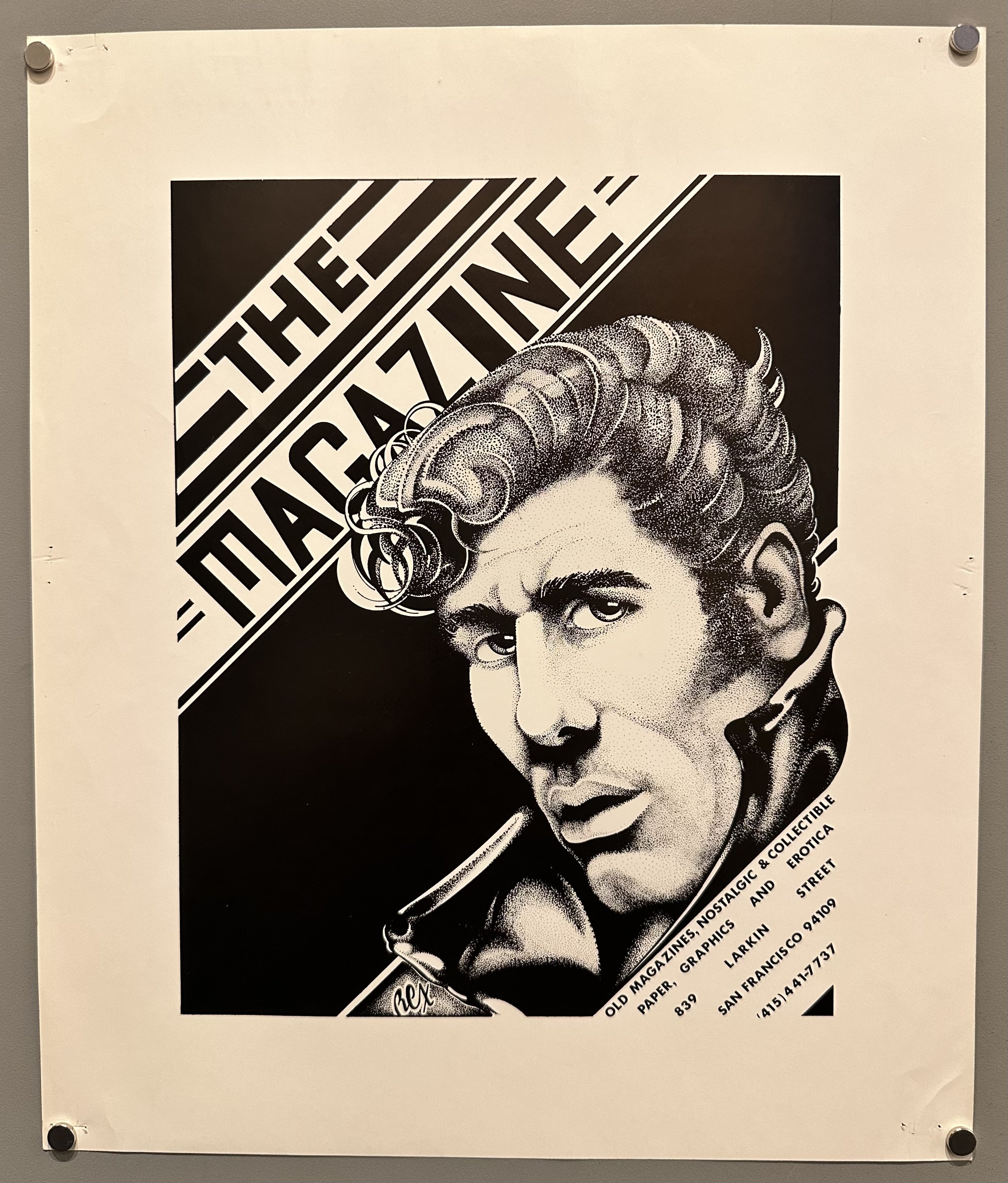 Advertisement for a San Francisco vintage ephemera store. The image is believed to depict Tony DeBlase, a notable figure in the leather community.