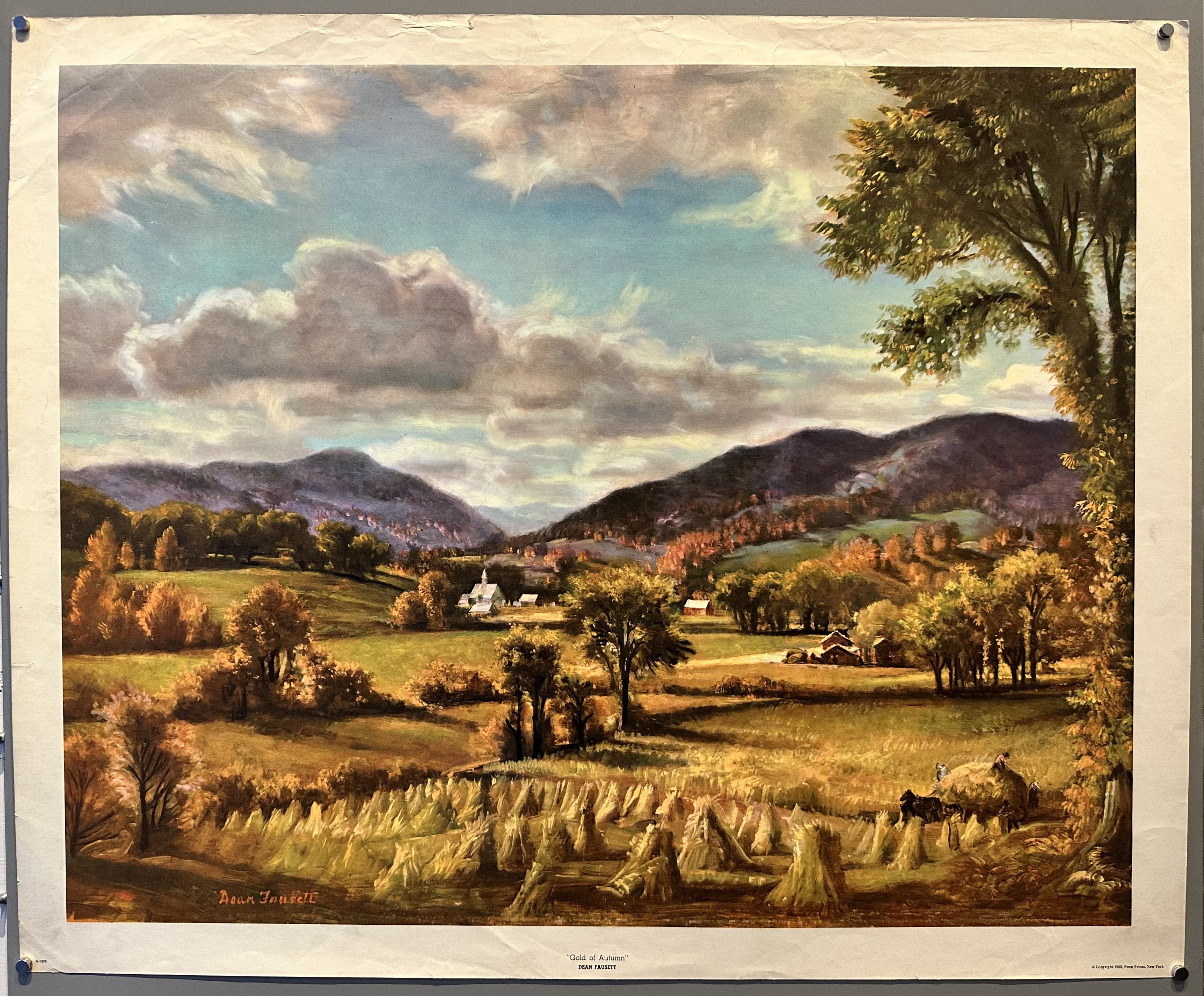 Print of a painting by Dean Fausett. Fausett was an American painter who painted romantic landscapes and portraits of notable figures like Dwight D. Eisenhower, Ronald Reagan, and the Duke and Duchess of Windsor.
