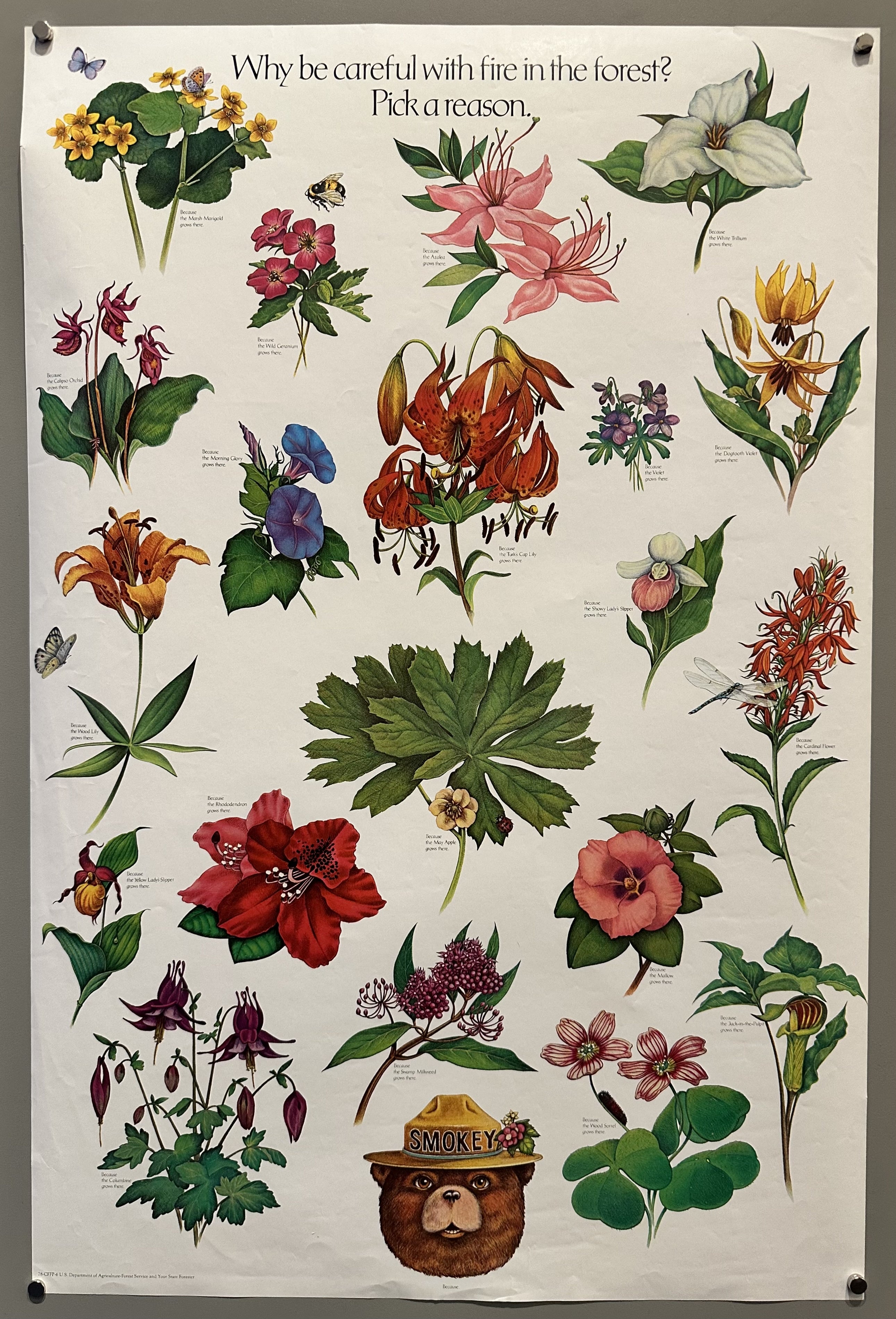 Wildfire prevention poster featuring various types of wildflowers.