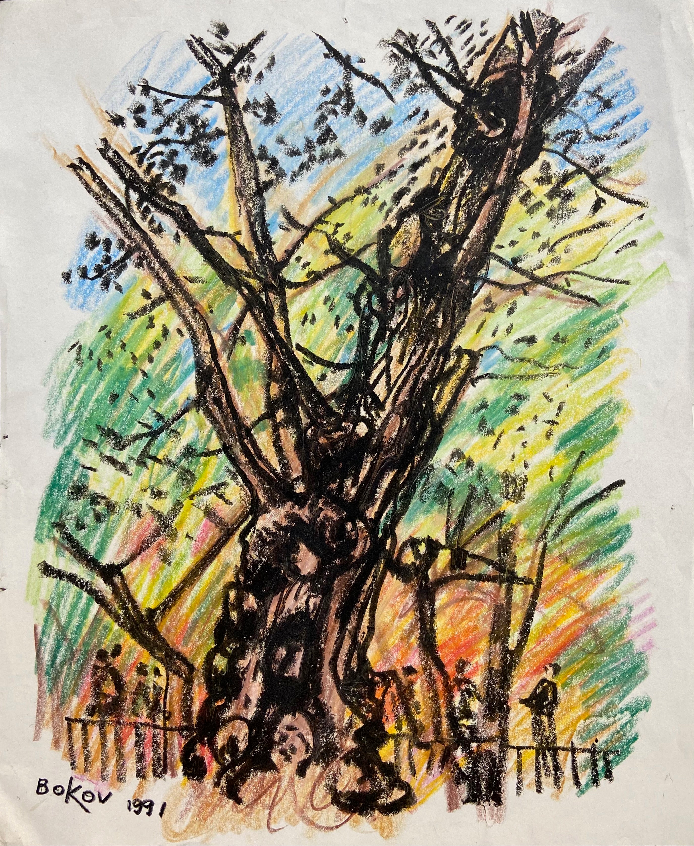 Tree in a Park Konstantin Bokov Oil Stick Drawing