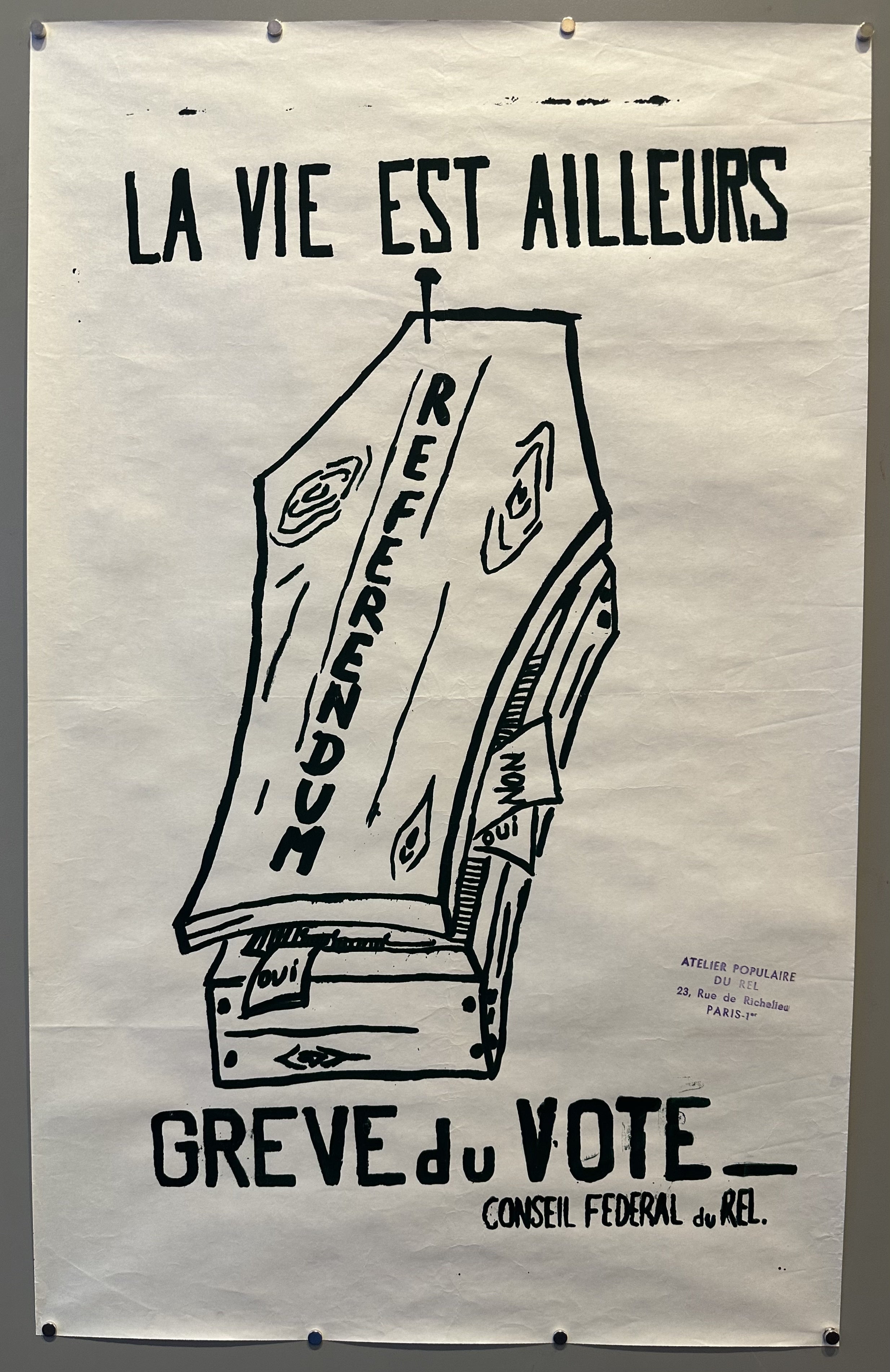 Political protest poster produced during May 1968 (Mai 68) in France. Mai 68 was a significant period of social unrest for students and the working class under Charles de Gaulle's administration. These protestors designed and utilized bold and simple posters to galvanize support.