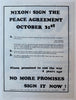 SIDE B: "NIXON: SIGN THE / PEACE AGREEMENT / OCTOBER 31st / NO MORE PROMISES / SIGN IT NOW!"