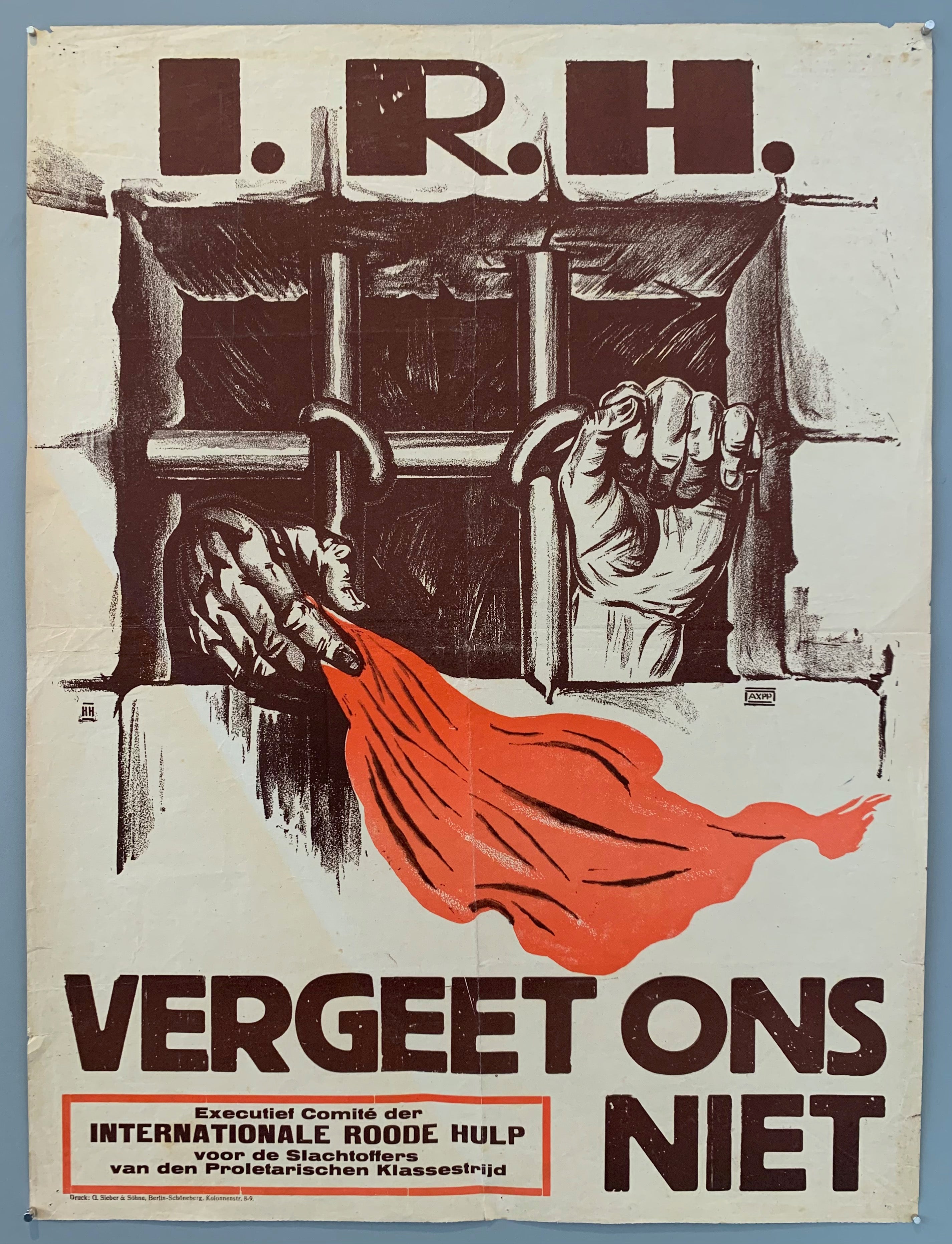 "I.R.H. Vergeet Ons Niet, Executief Comite der Internationale Rode Hulp voor de Slachtoffers van den Proletarischen Klassestrijd" (I.R.H. Forget Us Not, Executive Committee of the International Red Aid for the Victims of the Proletarian Class Struggle)