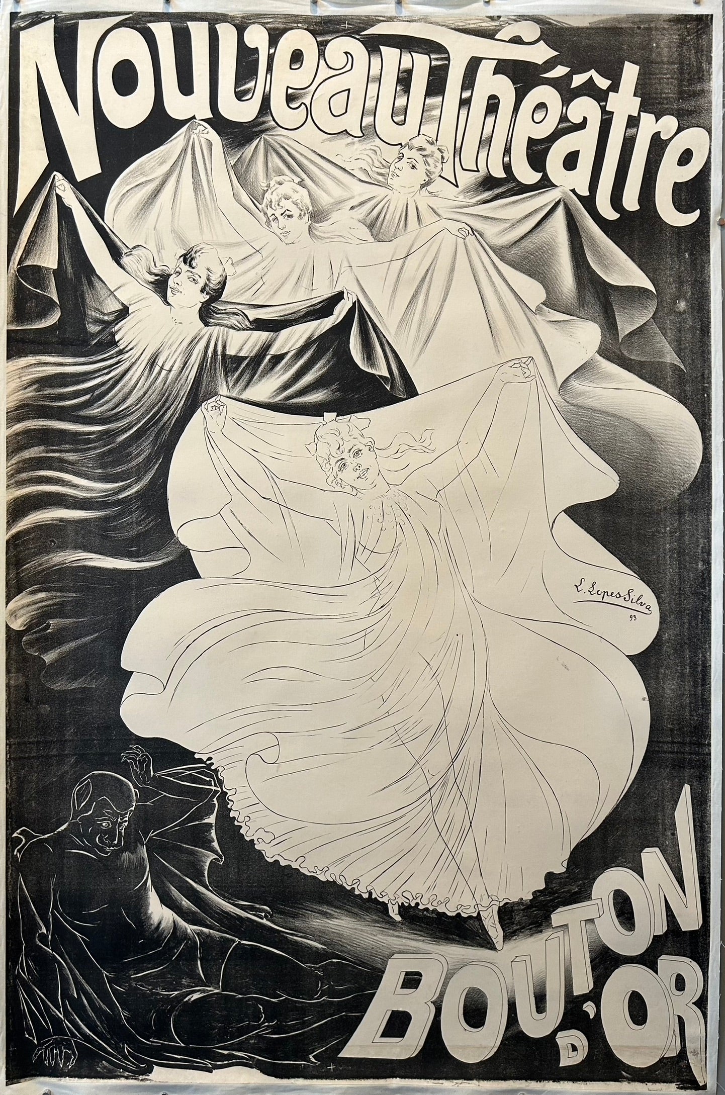 500-1000 black and white dancers Large Lucien Lopes Silva Nouveau Théâtre Bouton d'Or. poster size-47x63 The buttercup theater theater vintage poster