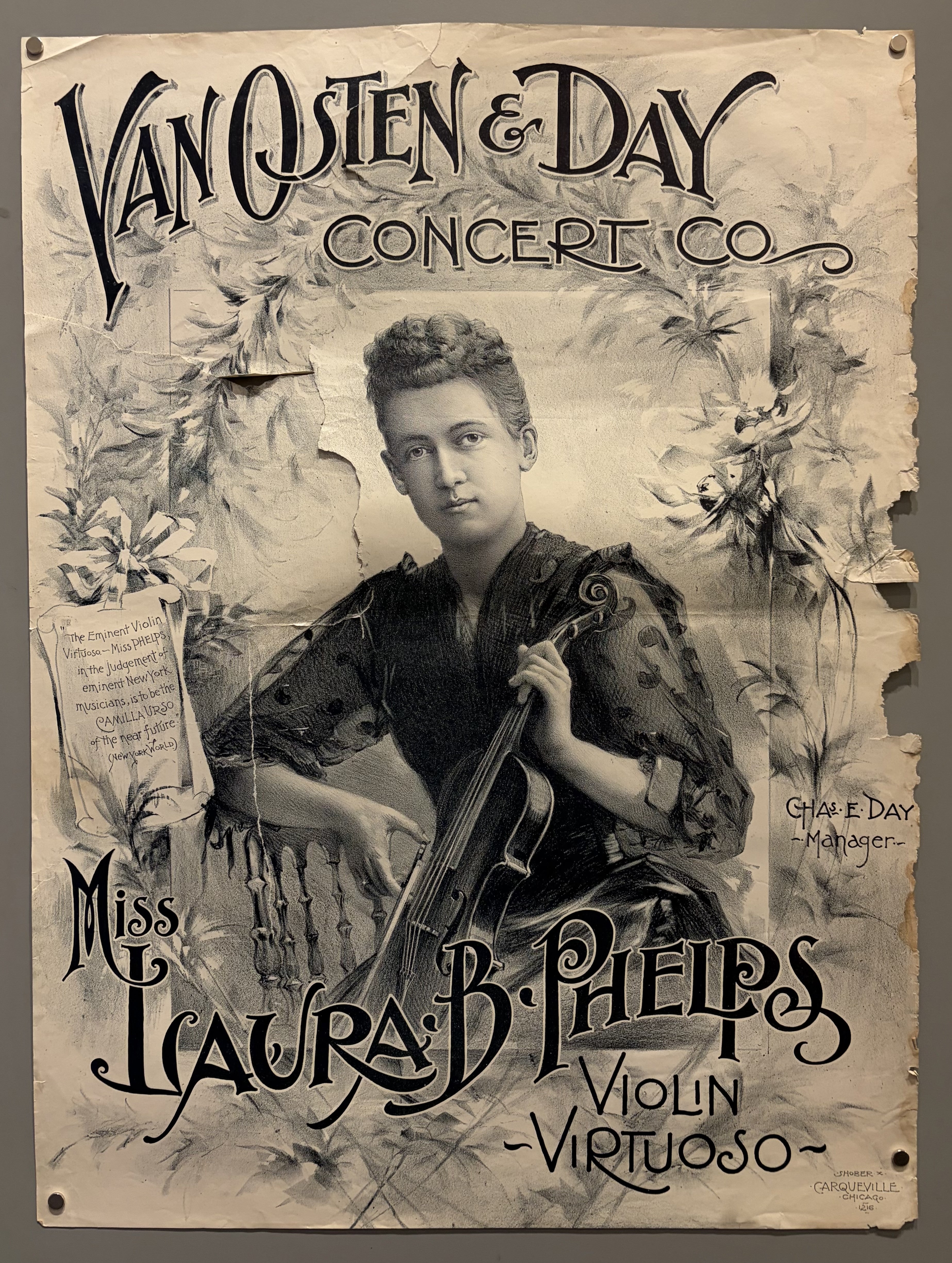 For a concert featuring violinist Miss Laura B. Phelps, managed by Charles E. Day.