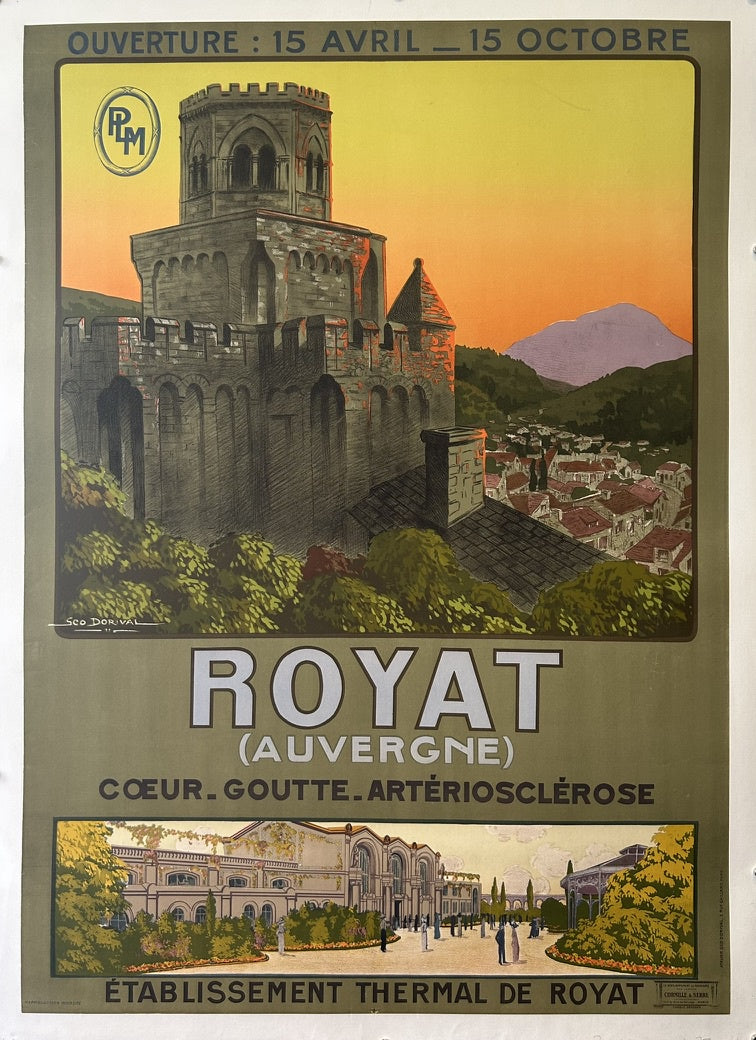 French travel advertisement for Royat, a spa town in Auvergne, France, designed by Géo Dorival.