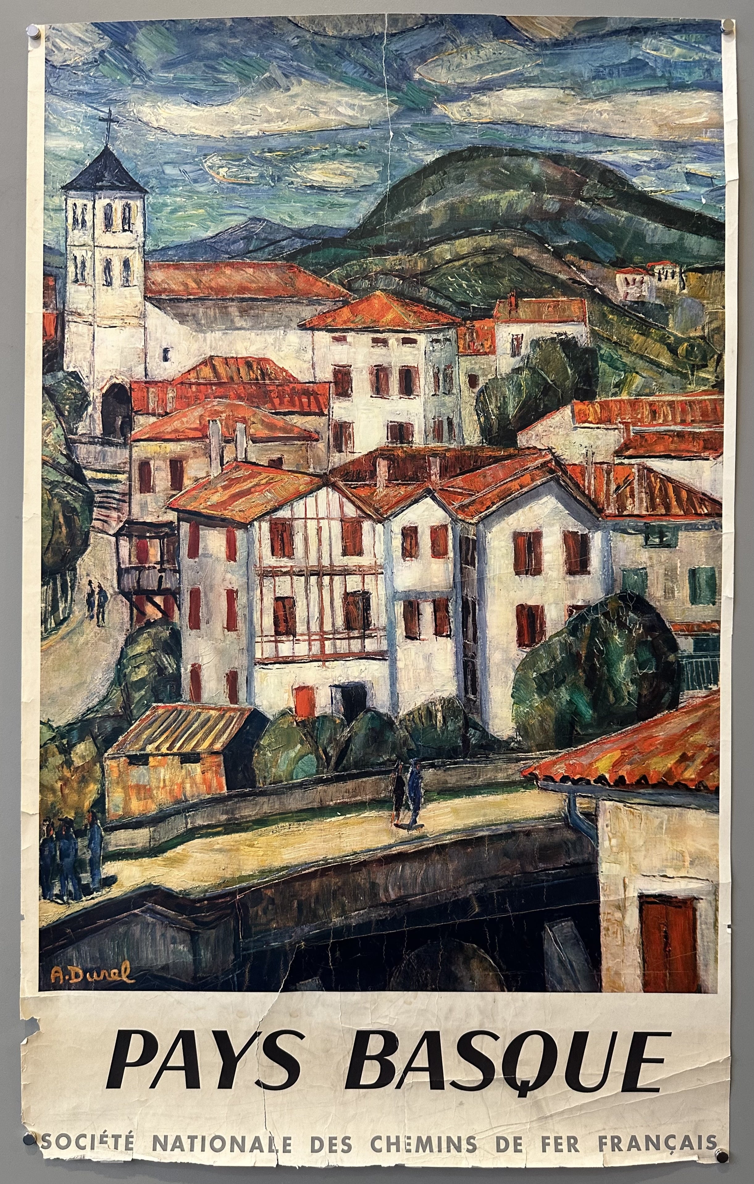 A beautiful original poster by A. Durel of a scenic day in the Basque Country for SNCF.