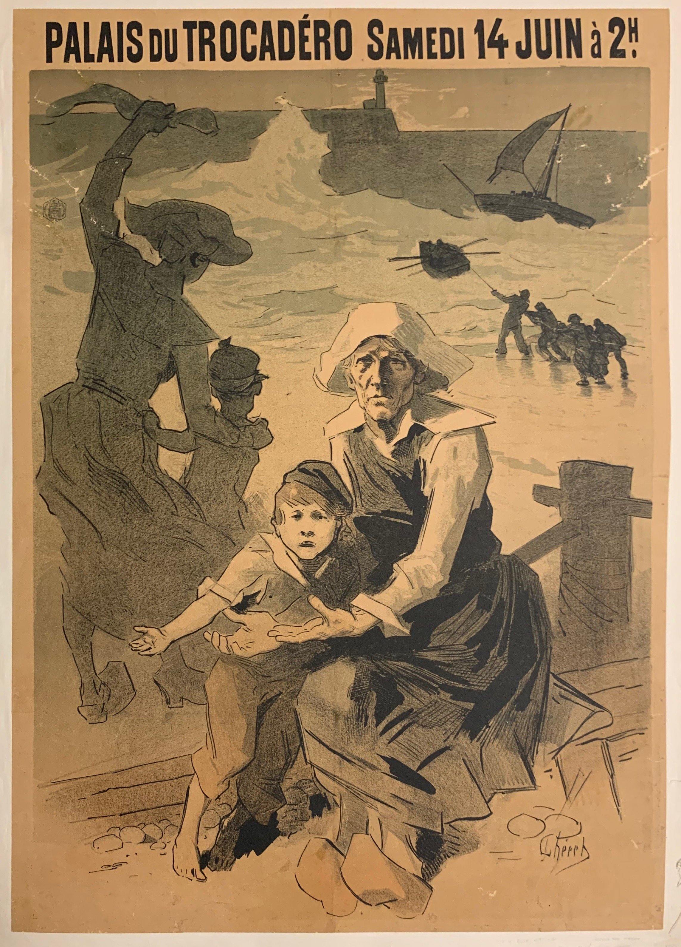 1900s 500-1000 art boat child france french lighthouse ocean original posters ship silhouette size-33x48 toc turn of the century vintage vintage posters waiting