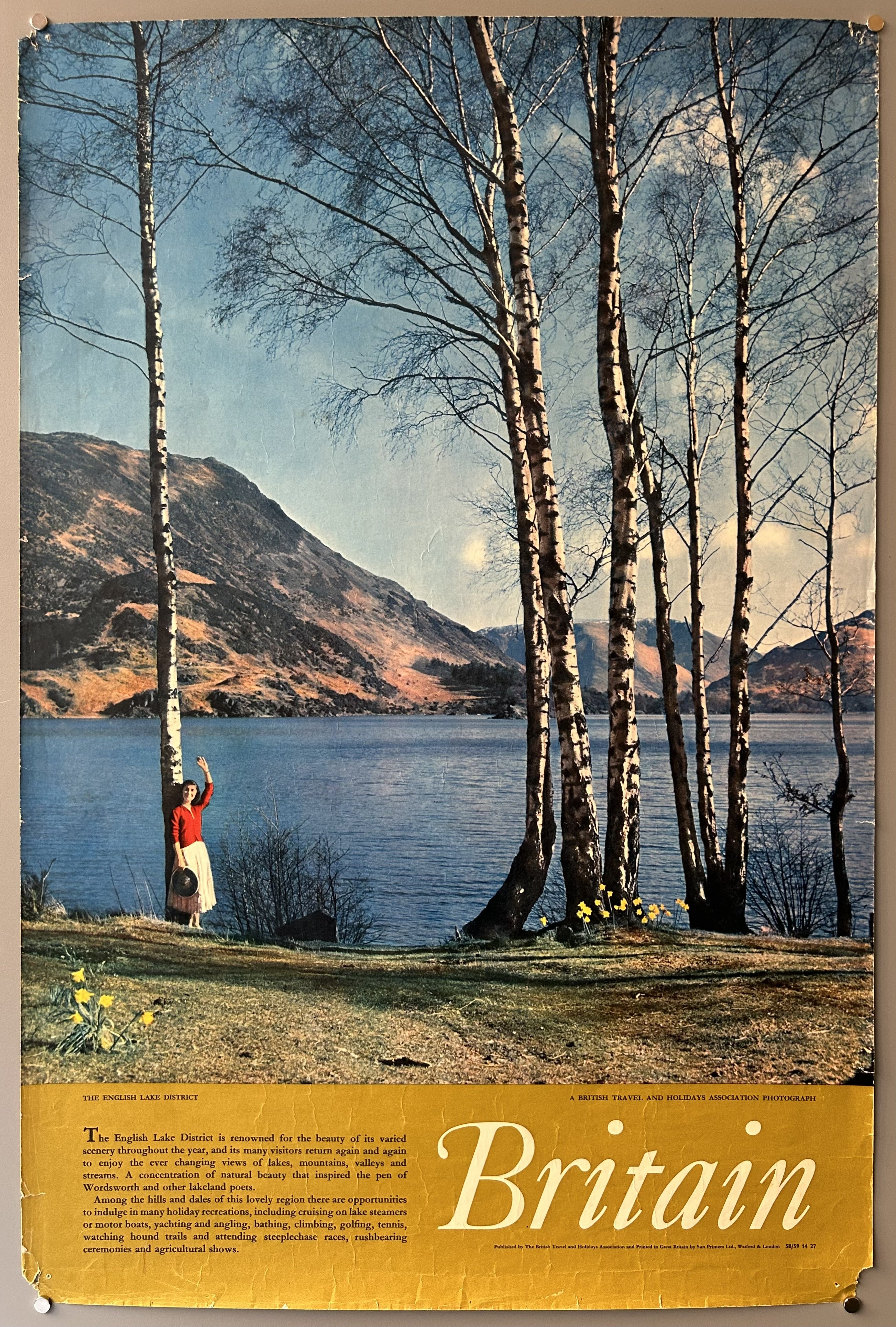 A British tourism poster featuring a photograph of the English Lake District.