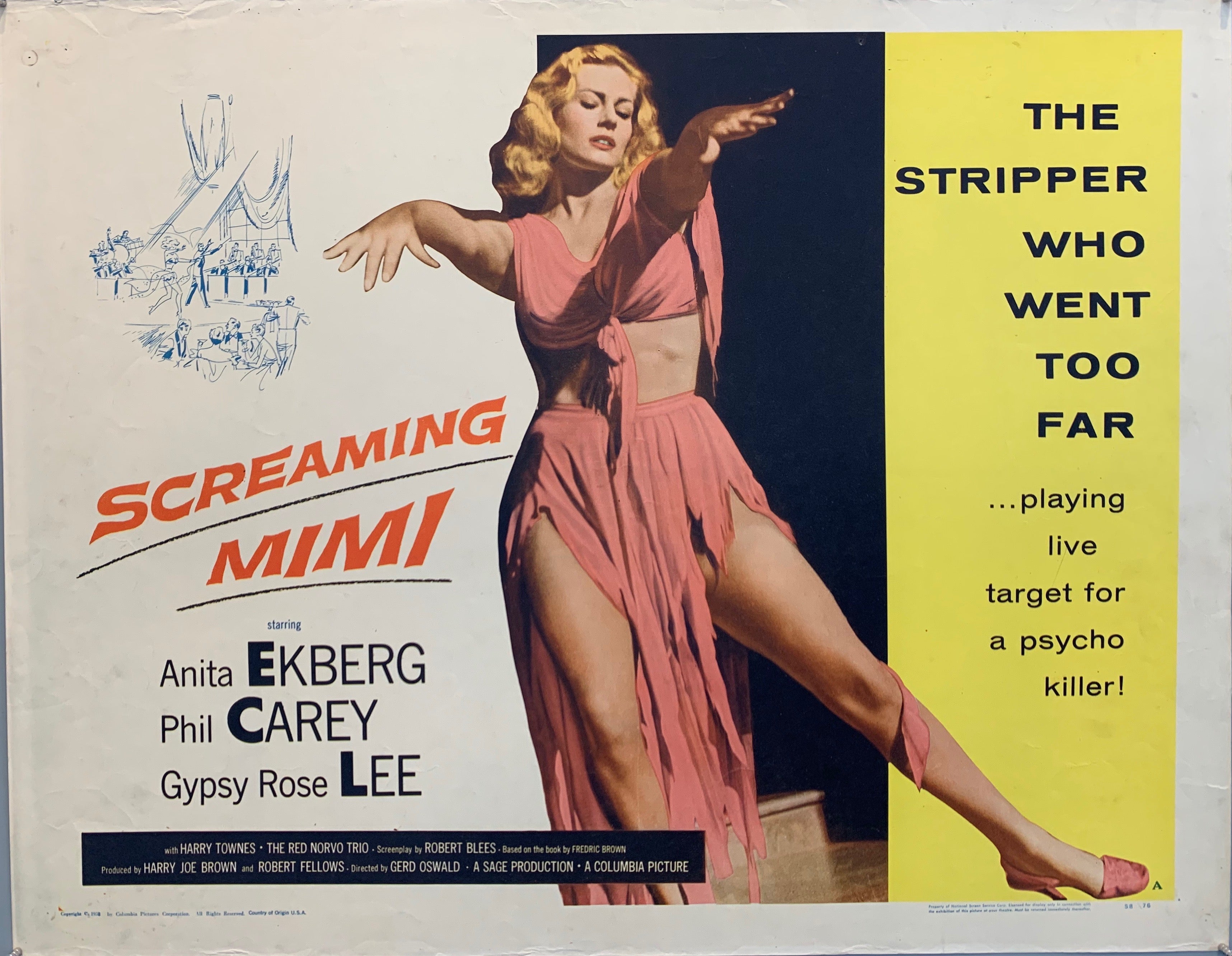 Screaming Mimi Vintage Film Poster. The Stripper Who Went Too Far... Playing Live Target For A Pyscho Killer