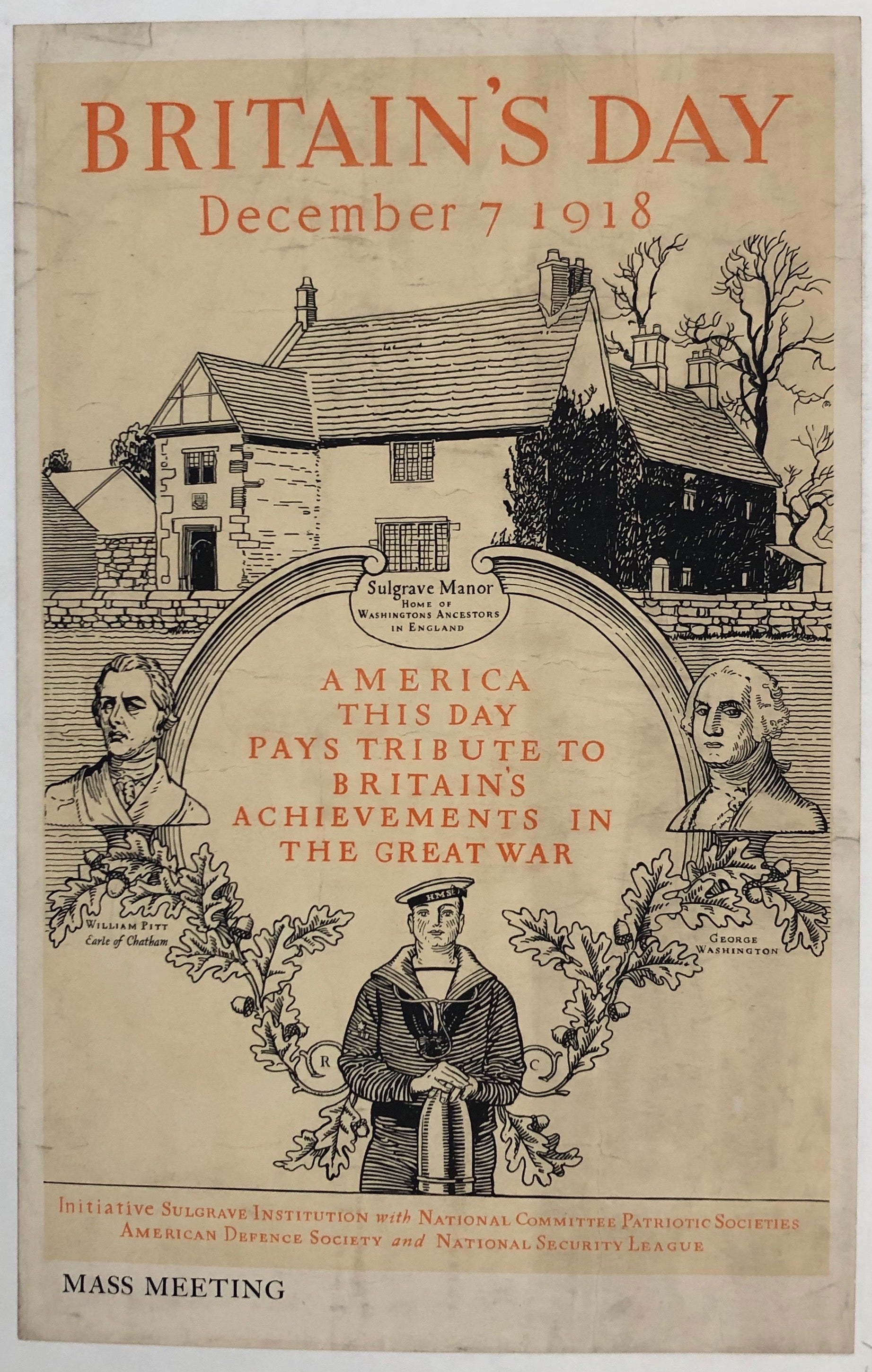 This day was meant to celebrate Britian's contribution to Germany's defeat in World War I. It was held at Sulgrave Manor, in England, home of George Washington's English ancestors, linking America and England in a moment of united patriotism.