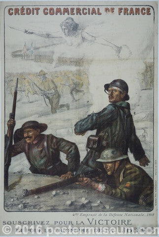 1918 500-1000 allies bonds c. 1910 France french Jonas L. Jonas liberty national defense bonds Original patriotism propaganda size-31-75x47 trenches victory vintage poster War bond World War 1 WW1 WWI