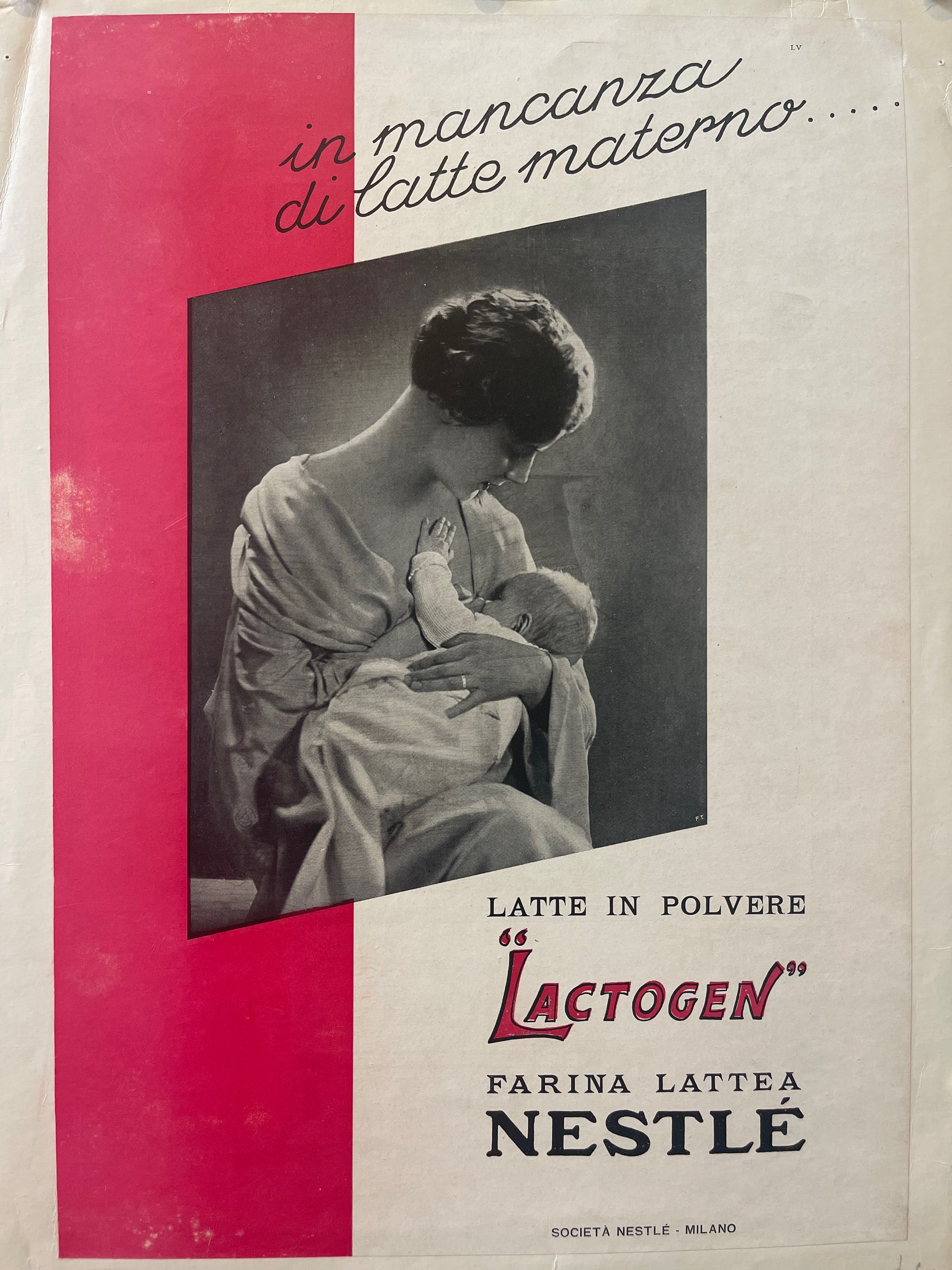 "In mancanza di latte materno...Latte in polvere 'Lactogen' farina lattea Nestlé"