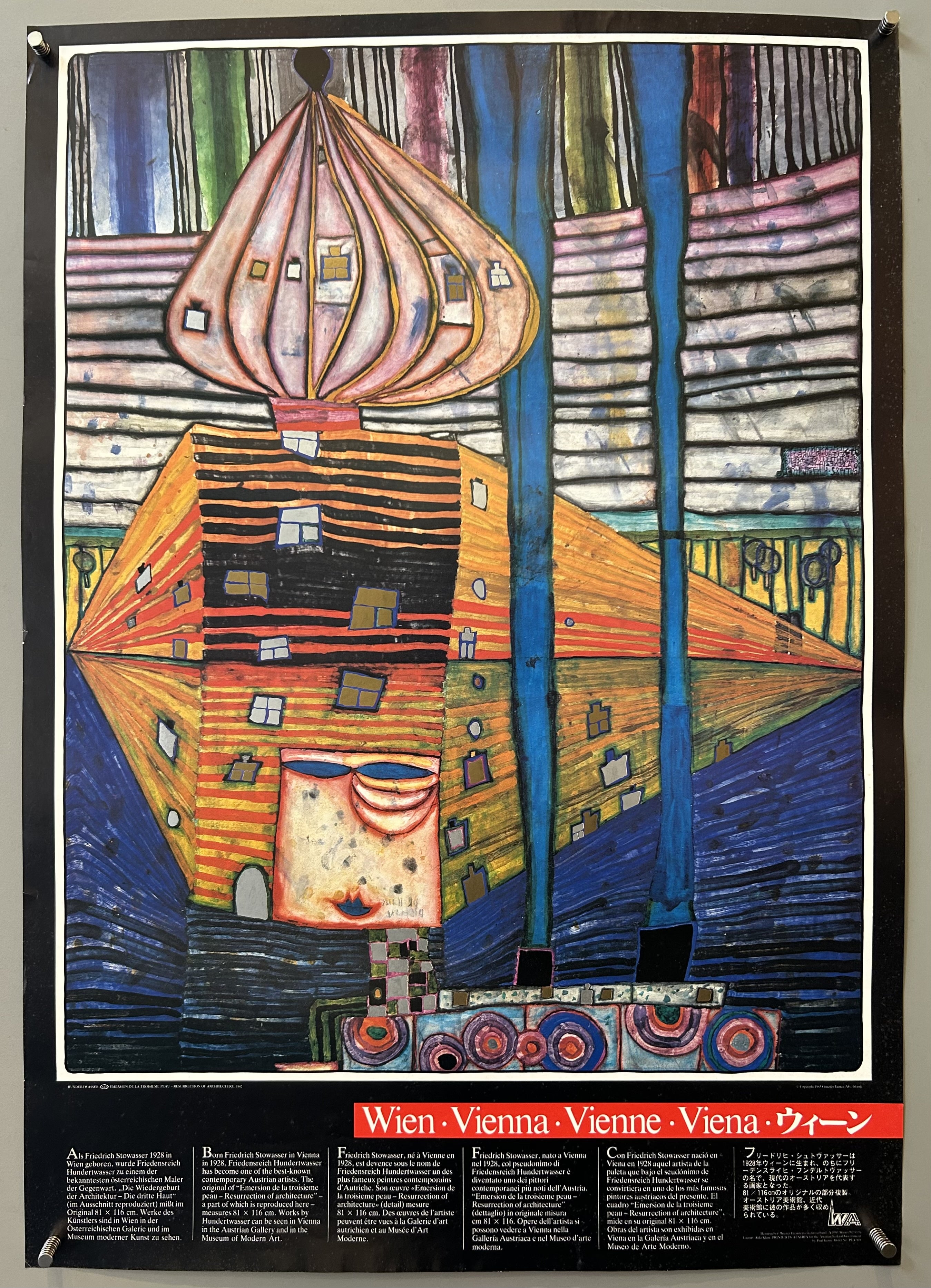 Poster of 'Resurrection of Architecture' by Austrian artist Friedensreich Hundertwasser to promote tourism to Austria.