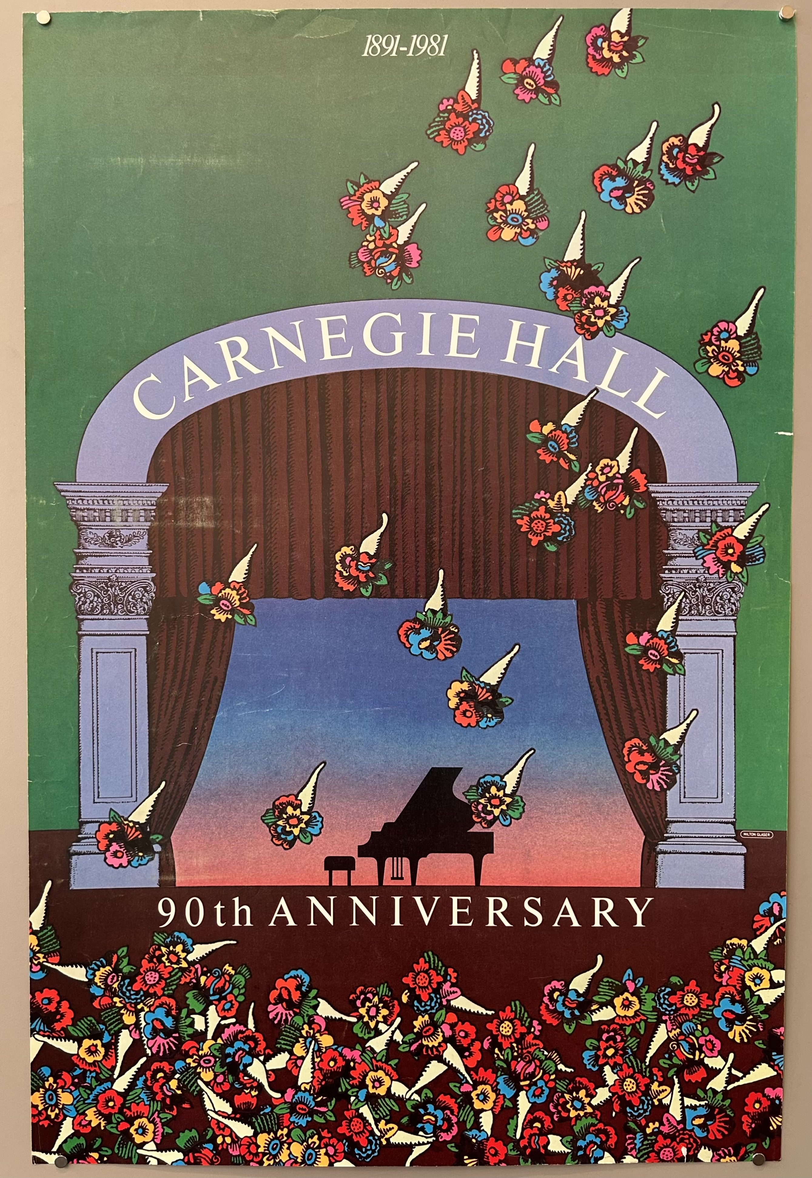 Commemorative poster honoring the 90th anniversary of Carnegie Hall, in New York City.