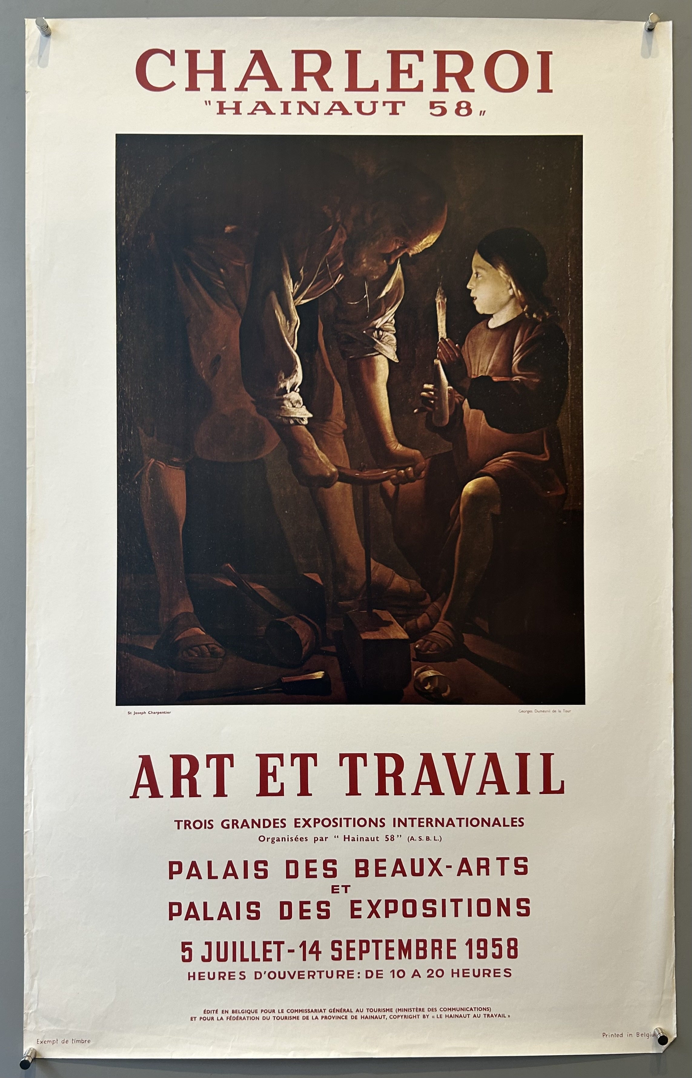 Promoting an exhibition of art in the westernmost province of Wallonia, the French-speaking region of Belgium. Featured is "St. Joseph Charpentier" by Georges Dumesnil.