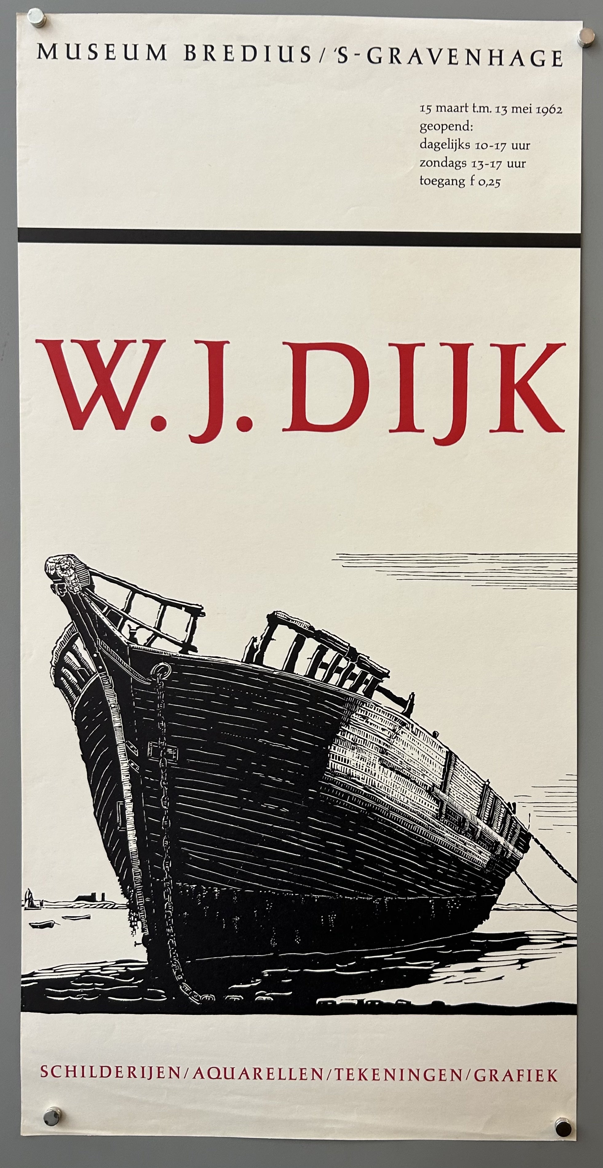 Exhibition poster for the Dutch artist W.J. Dijk, who worked as a painter, watercolorist, draftsman, and graphic artist, often focusing on maritime and landscape subjects.