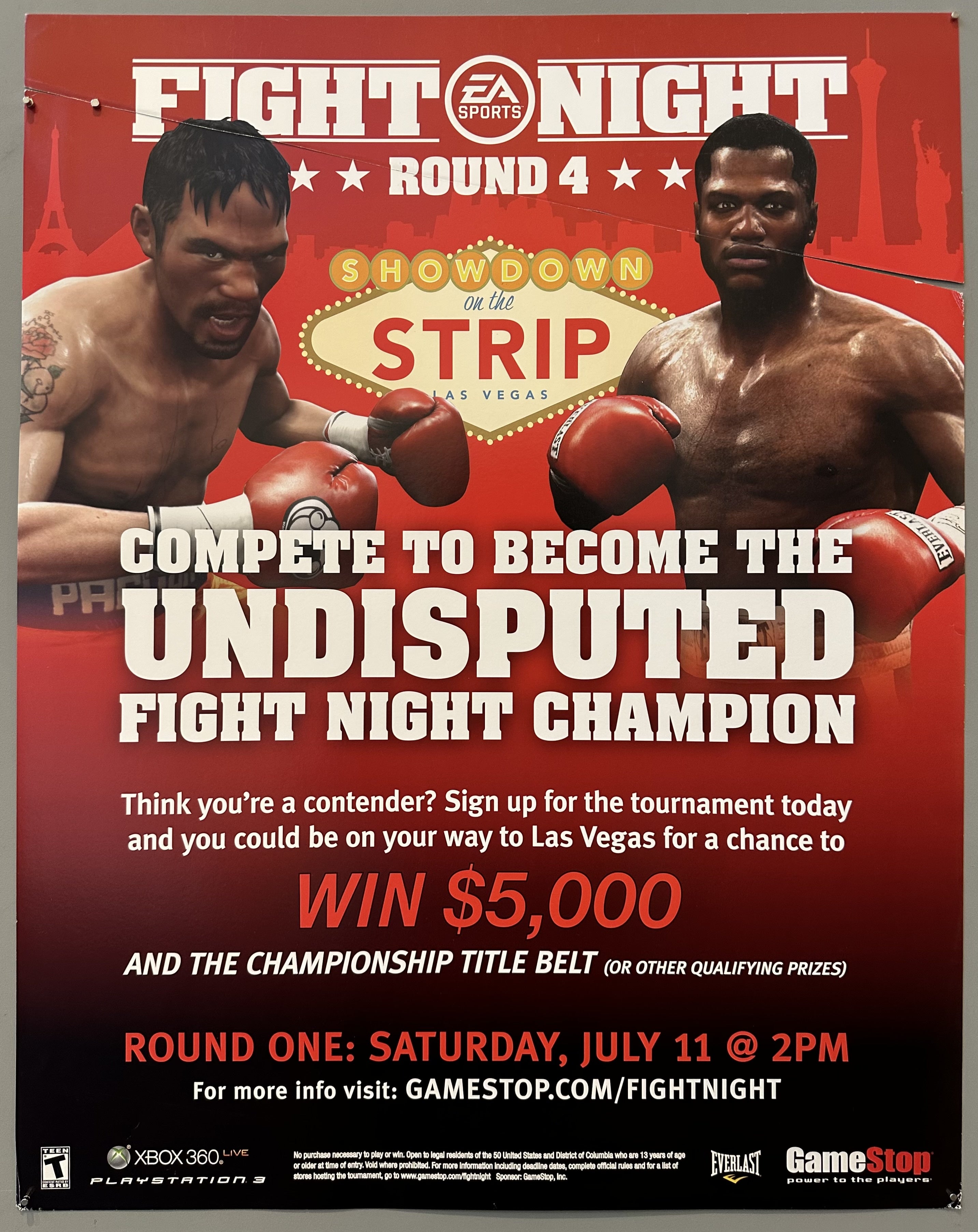 A modern-day relic! This splashy boxing print advertises the ultimate video game match in Sin City, sponsored by none other than GameStop!