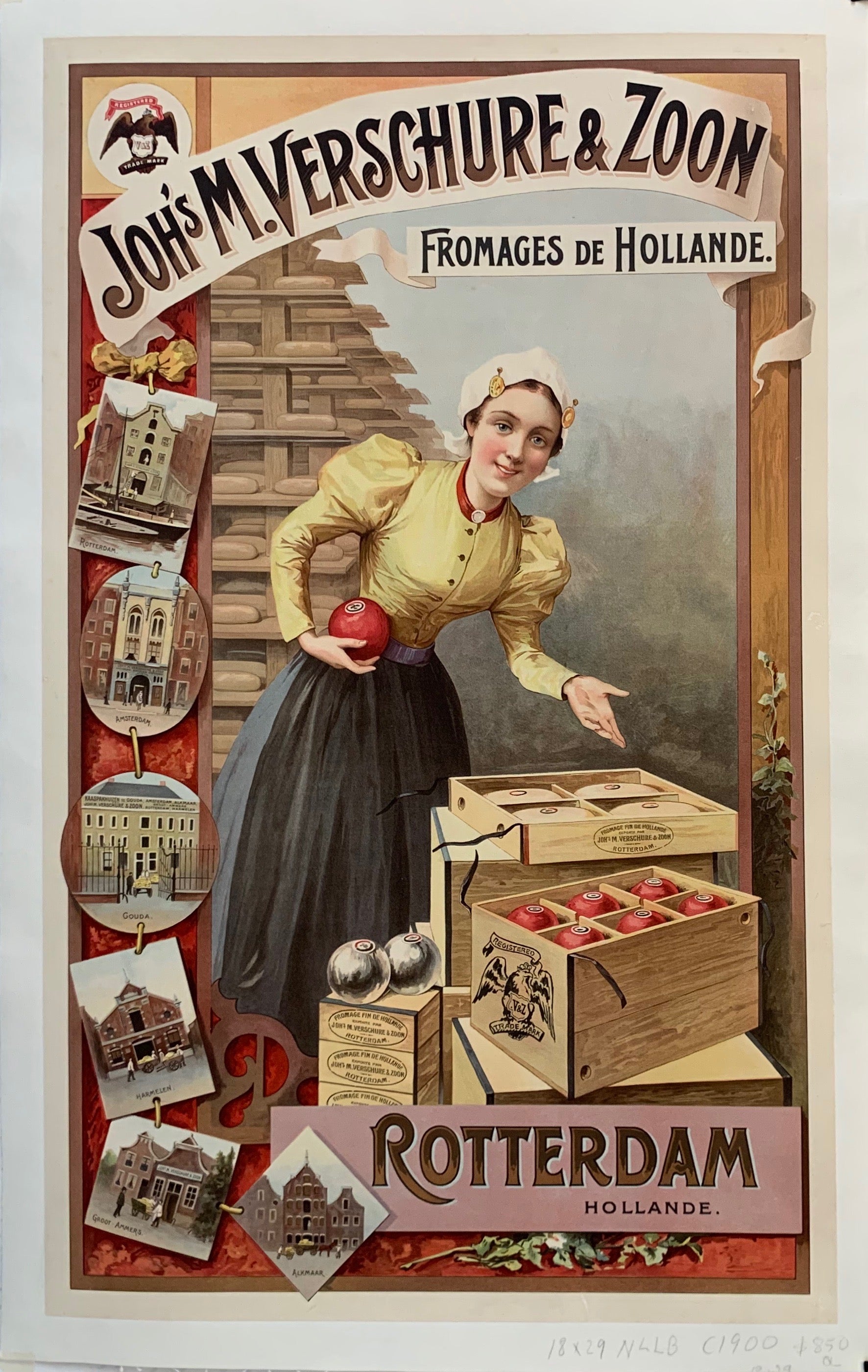 "Joh's M. Verschure & Zoon, Fromages de Holland" "Joh's M. Verschure & Son, Cheeses from Holland.