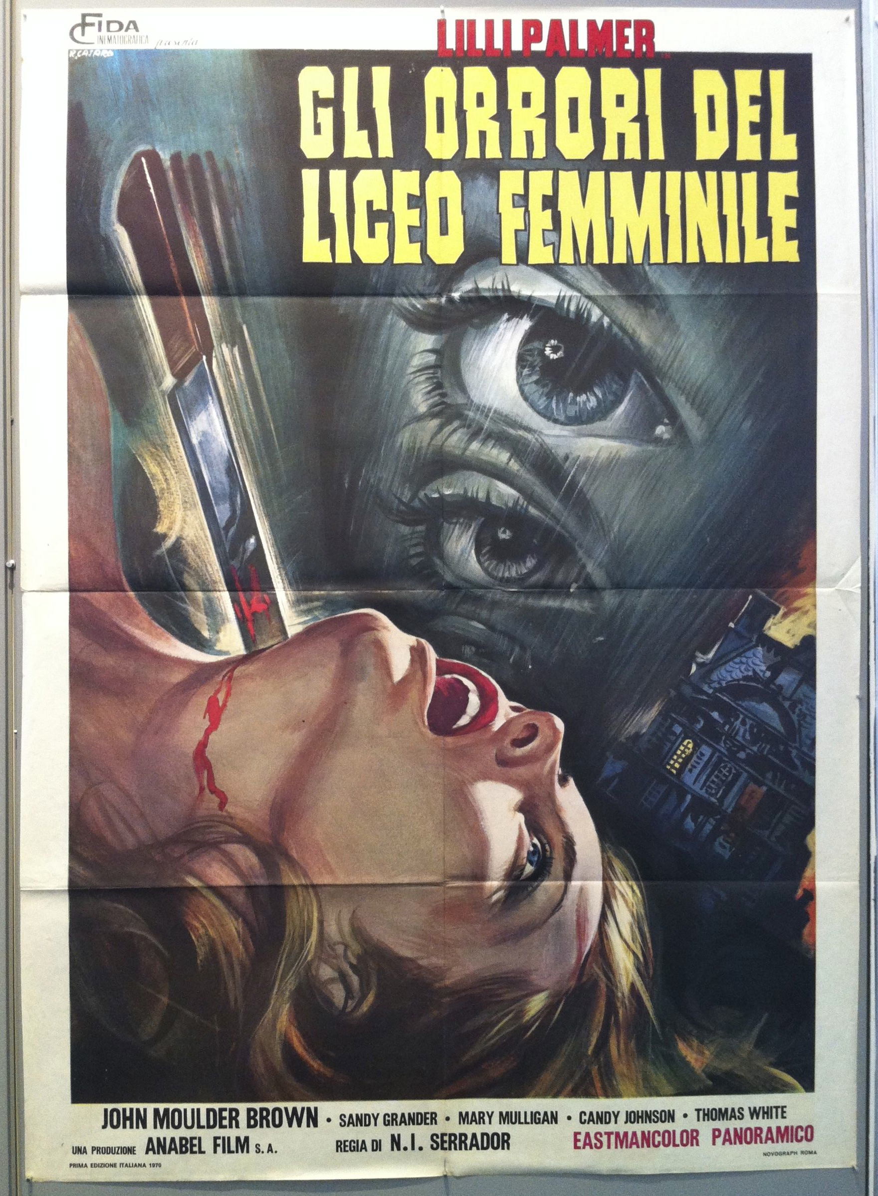 100-250 art attack blood blue eyes crime dark dead death eye eyes film film poster horror film house institute italian italy knife Large movie movie poster murder night original posters size-39x55 stabbed vintage vintage posters woman yellow letters young