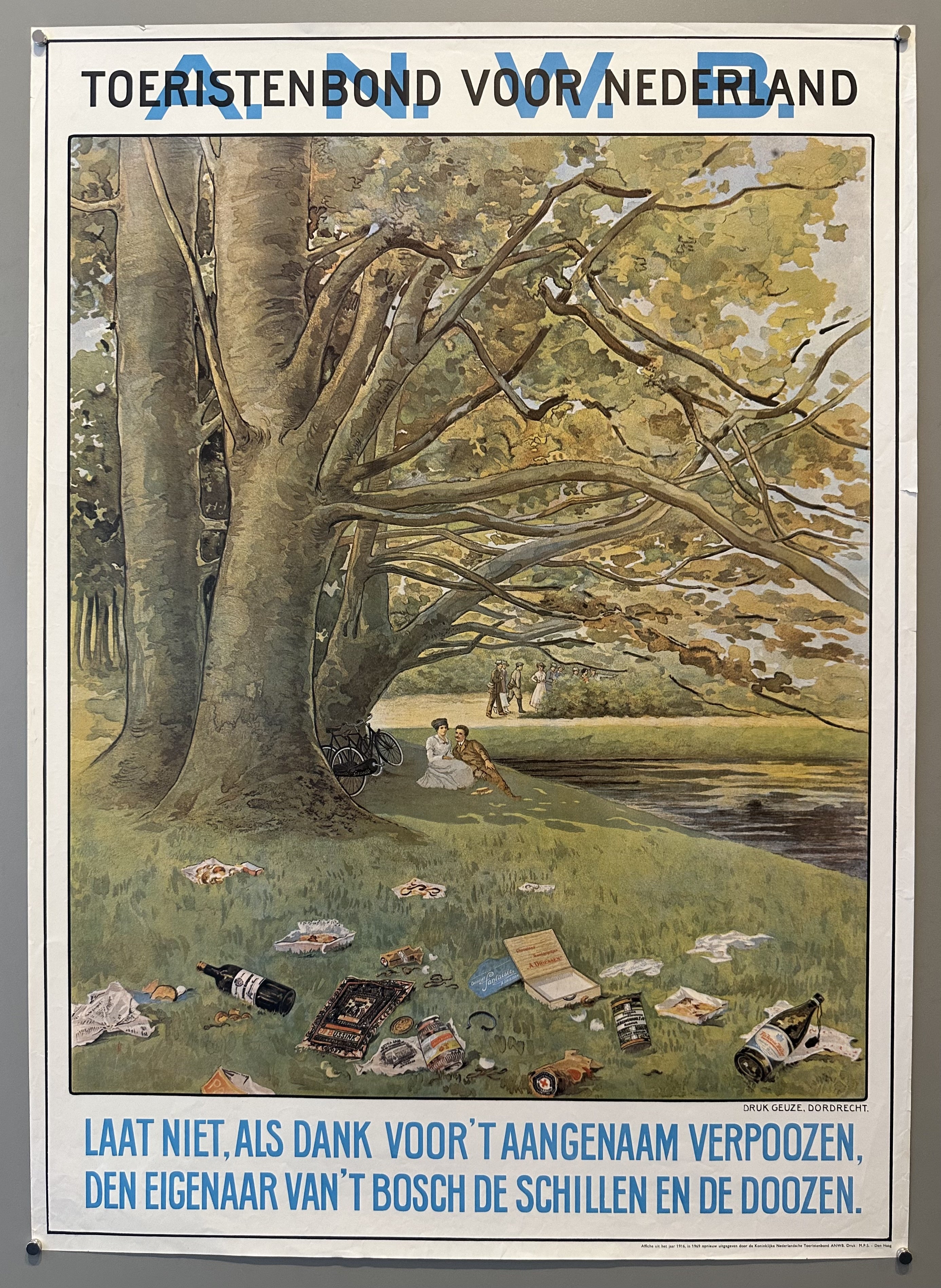 English translation: "Tourist Association for the Netherlands / As a thank you for the pleasant stay, do not give the owner of Van den Bosch the peels and the boxes"