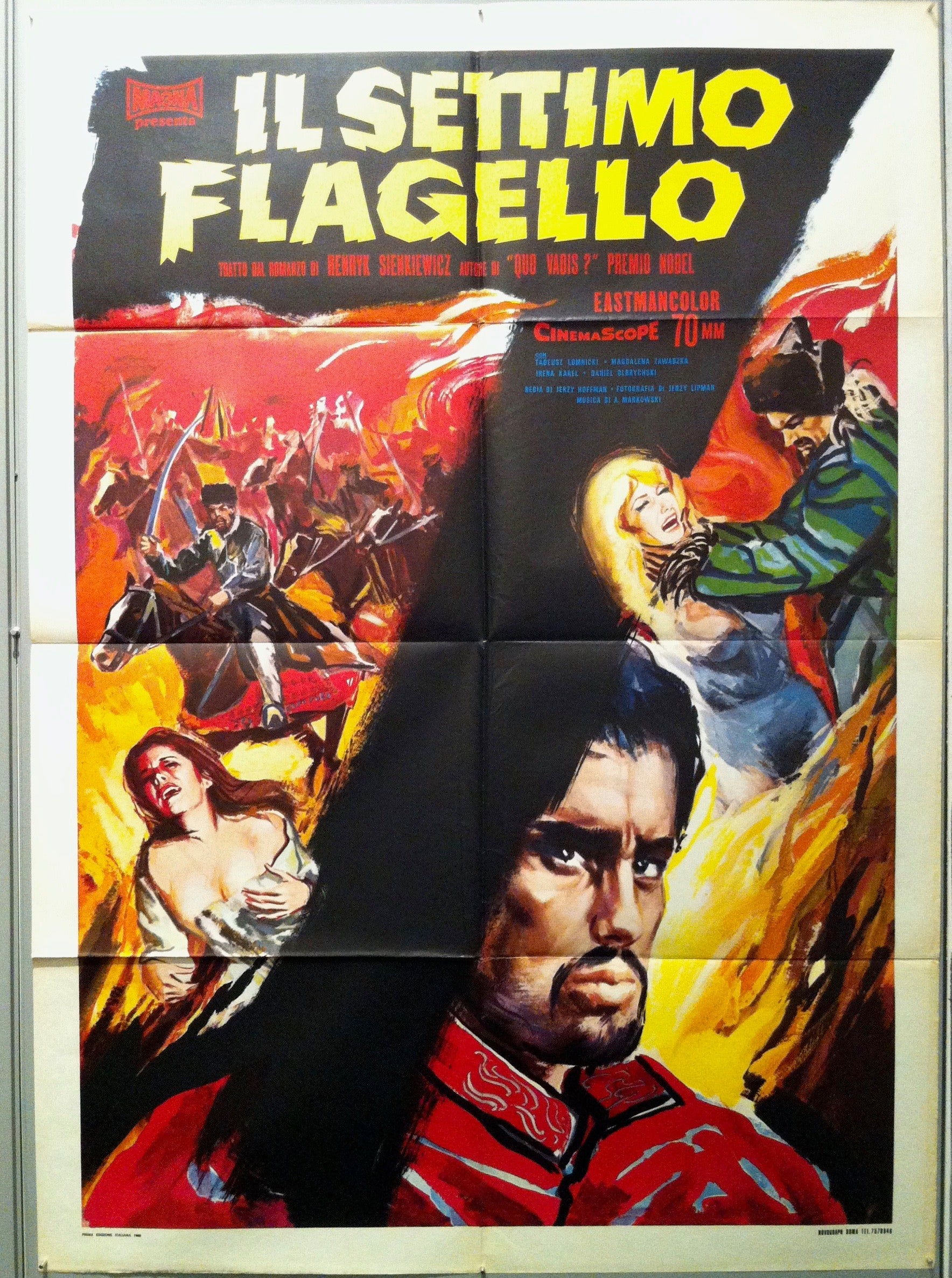 250-500 adventure army art attacked autore di "Quo Vadis" captured choking cinemascope eastmancolor film film poster fire history horses Italian Italy Large men movie movie poster original posters premio nobel riding horses running size-39x55 swords The Seventh Scourge vintage vintage posters violence war woman