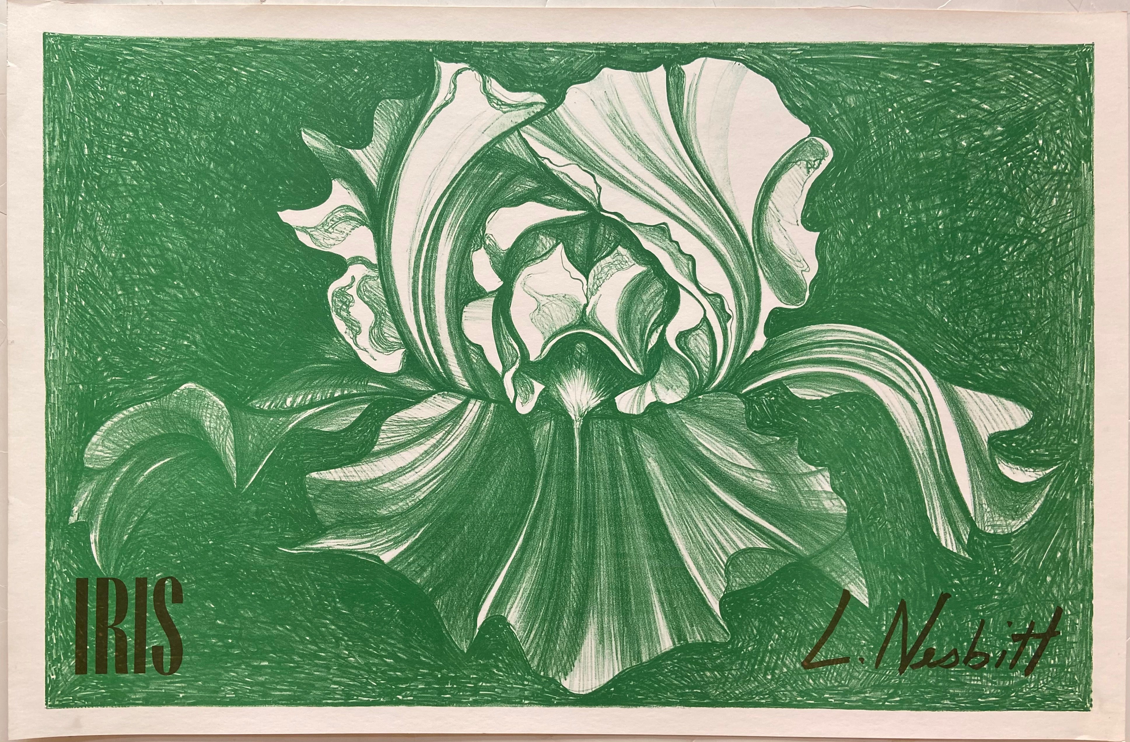 Original vintage poster by photorealist artist Lowell Nesbitt. A stunning and near-symmetric iris takes center-stage in this print.