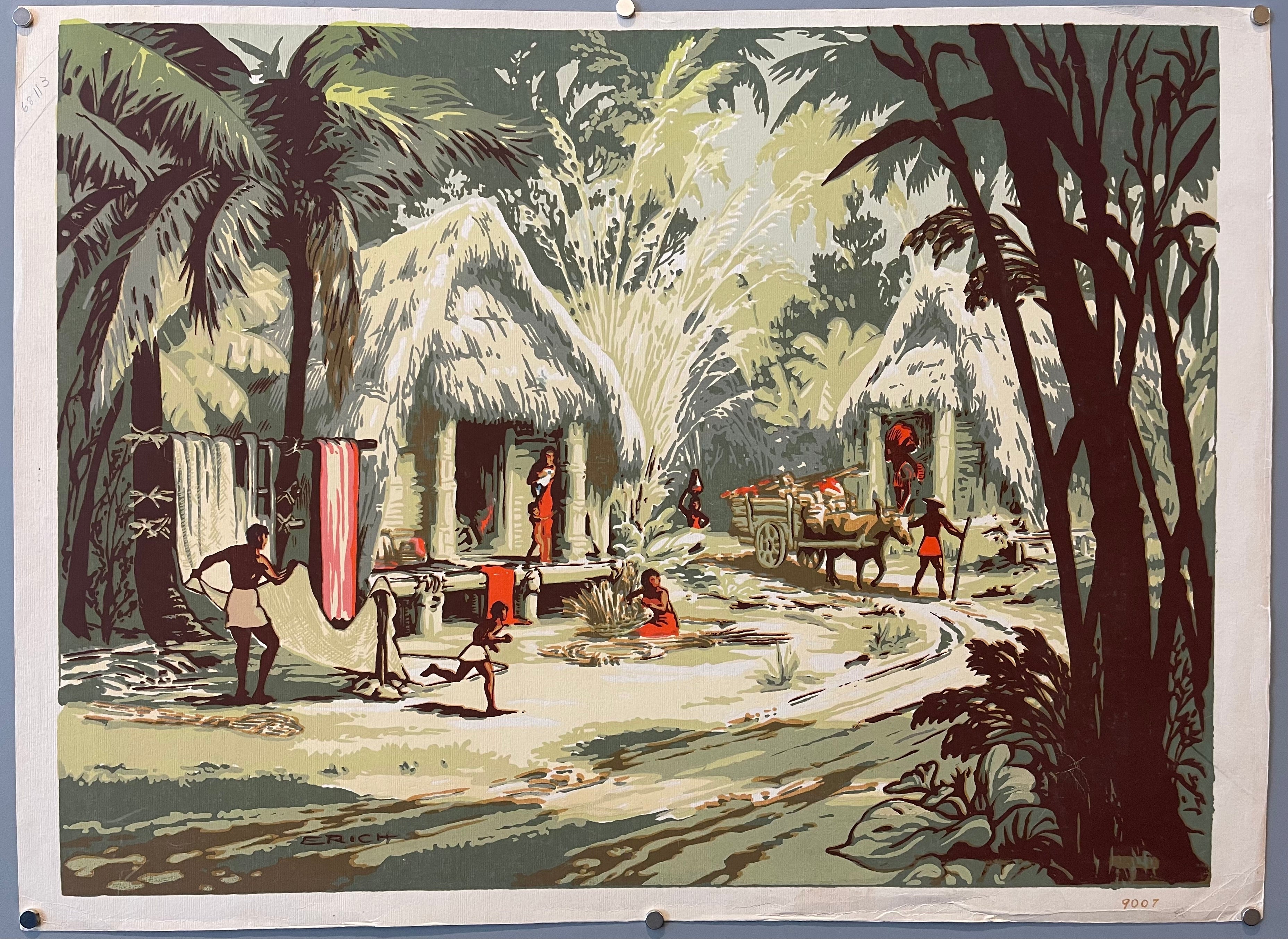 100-250 horizontal poster jungle original poster size-26x20 town village vintage poster
