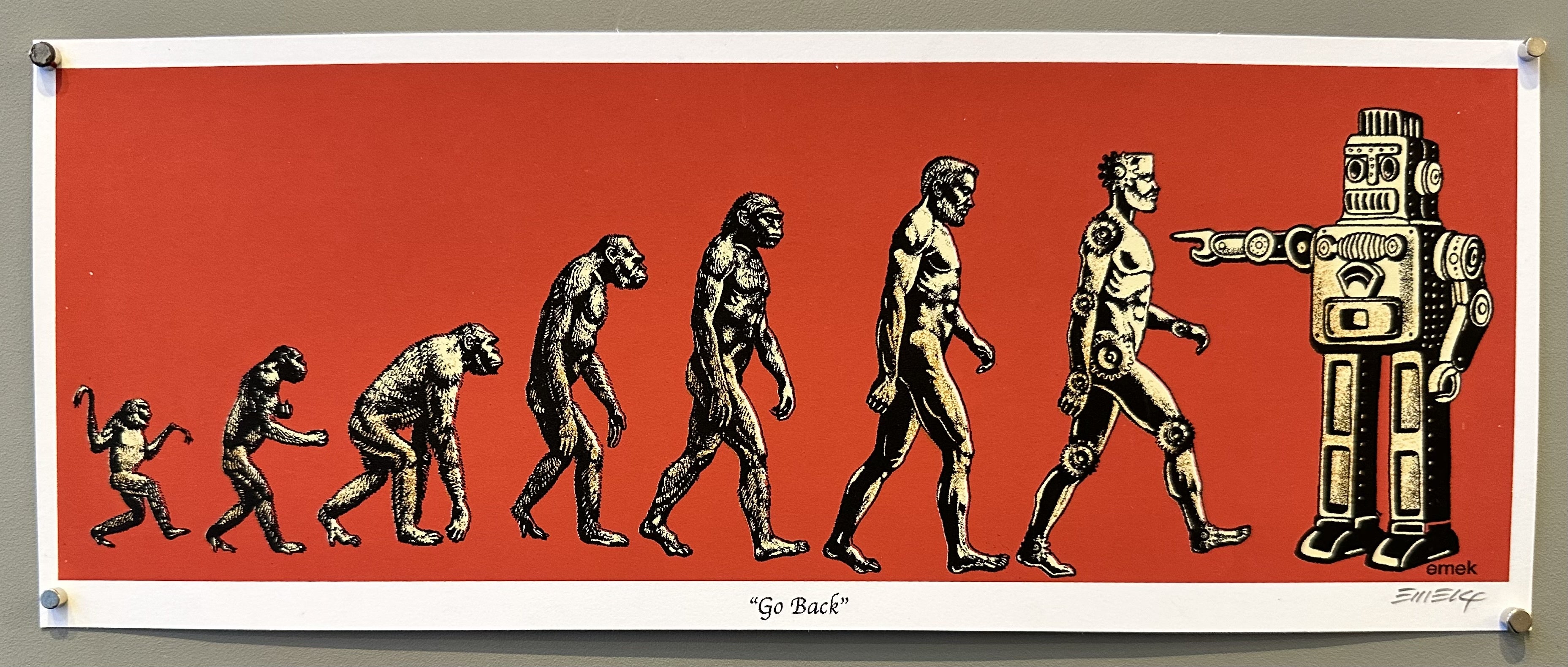 Emek blends the trippy, counterculture aesthetics of the 1960s with the industrial, mechanical imagery of the 1990s, earning him the title "The Thinking Man's Poster Artist." Unlike many digital artists, Emek hand-draws his designs before using traditional silk-screening methods, sometimes running a single poster through the press up to seven times to achieve specific colors and textures.