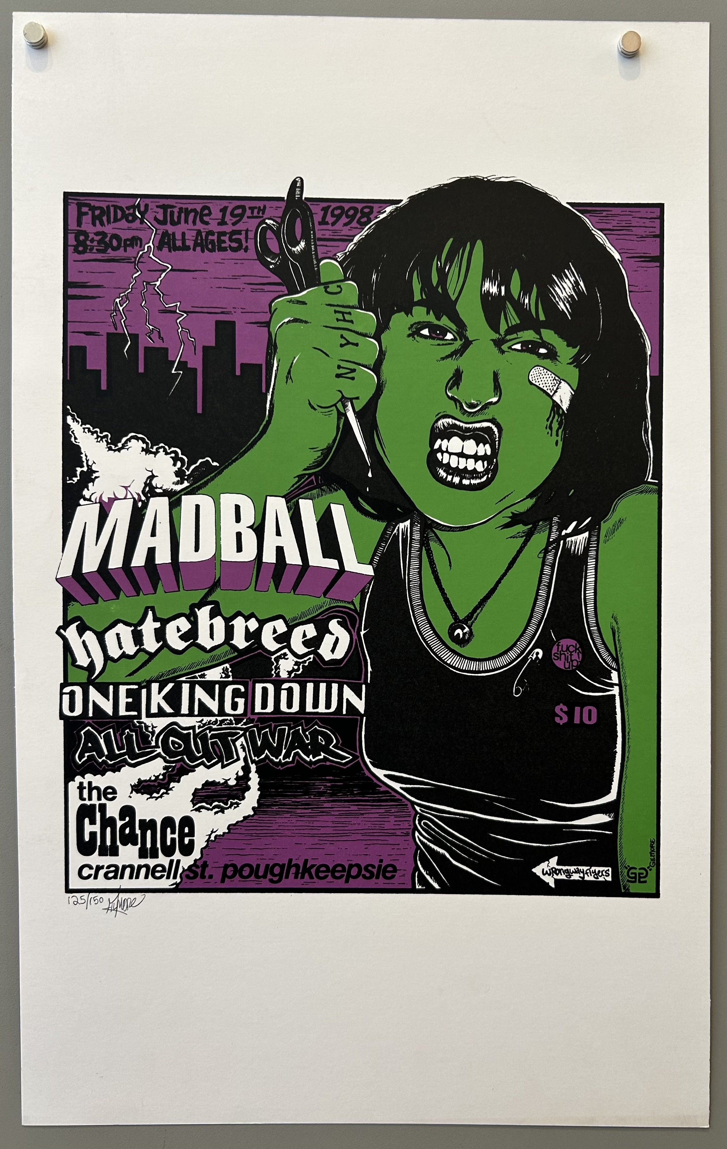 Original limited edition signed print promotion of a hardcore punk show at The Chance, on Crannell St. in Poughkeepsie, New York.