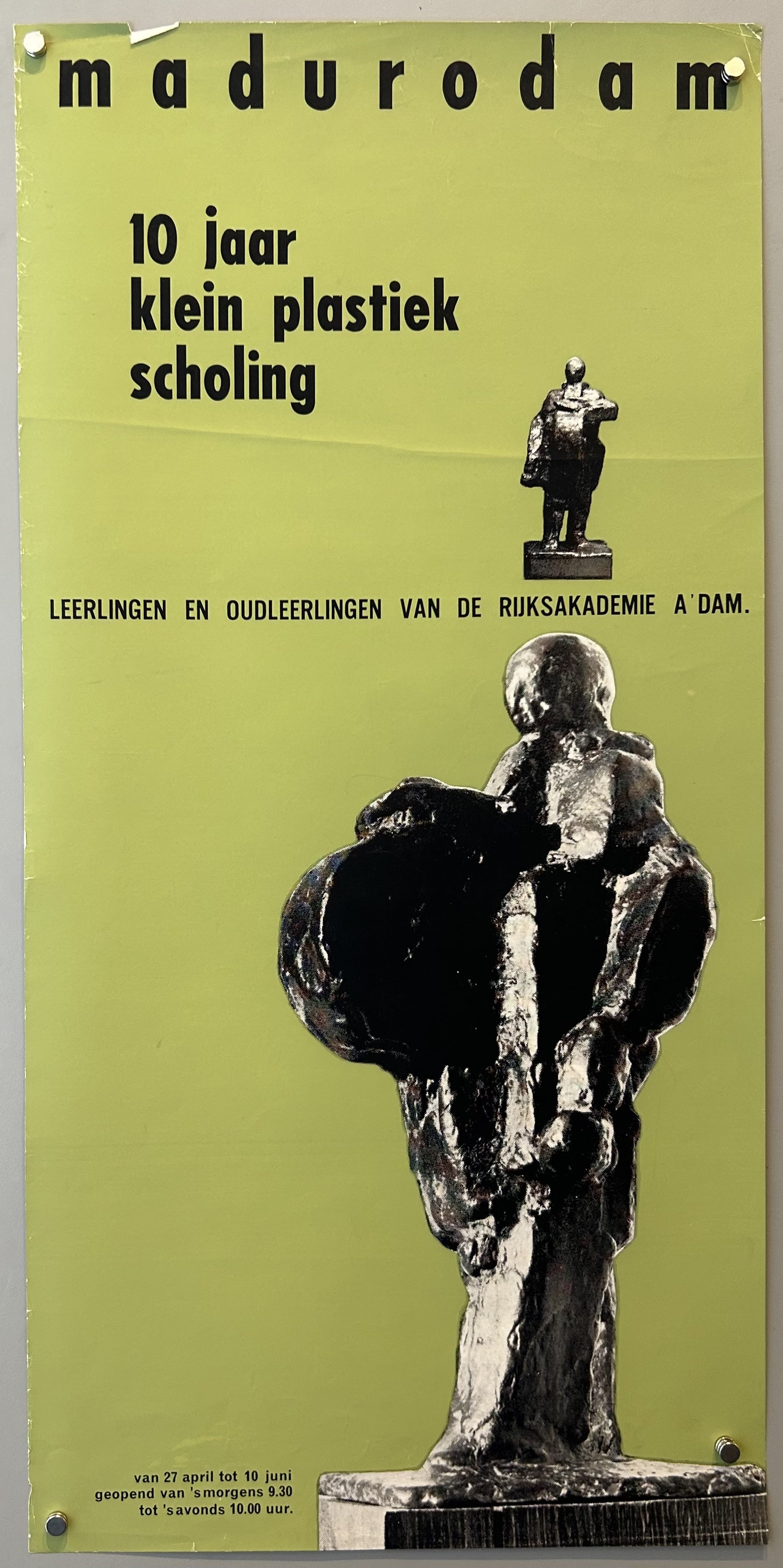 English translation: "Madurodam, 10 years of small plastic arts education, Students and alumni of the Rijksakademie A'Dam"