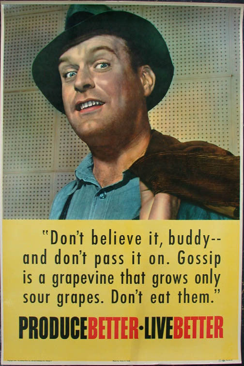 "Don't belive it, buddy -- and don't pass it on. Gossip is a grapevine that grows only sour grapes. Don't eat them."