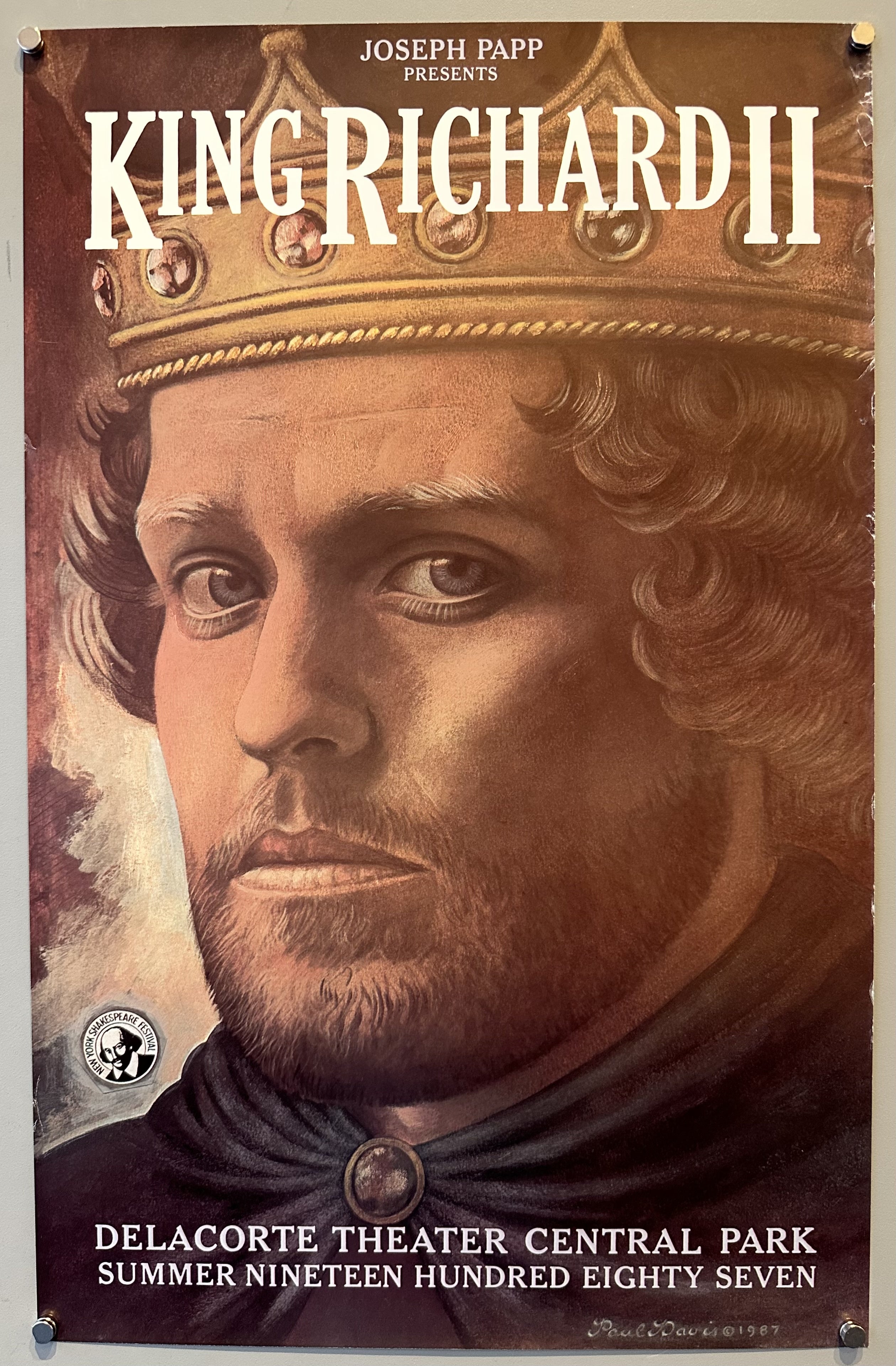 The New York Shakespeare Festival production of King Richard II. The play was performed at the Delacorte Theater in Central Park during the summer.