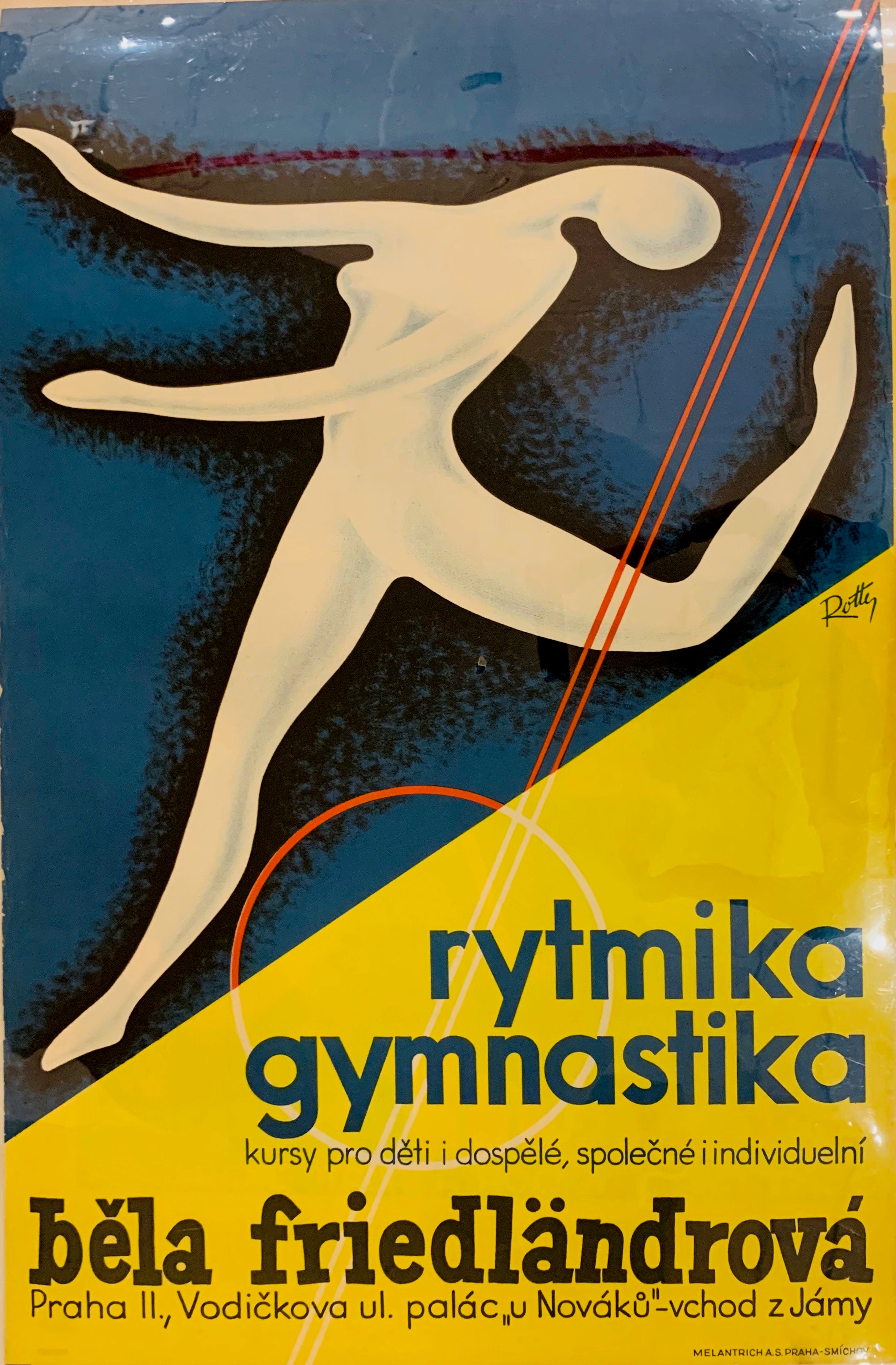 What a cool vintage poster! This advertisement for a gymnastics school in Prague looks more like a piece of art than a promotional work!