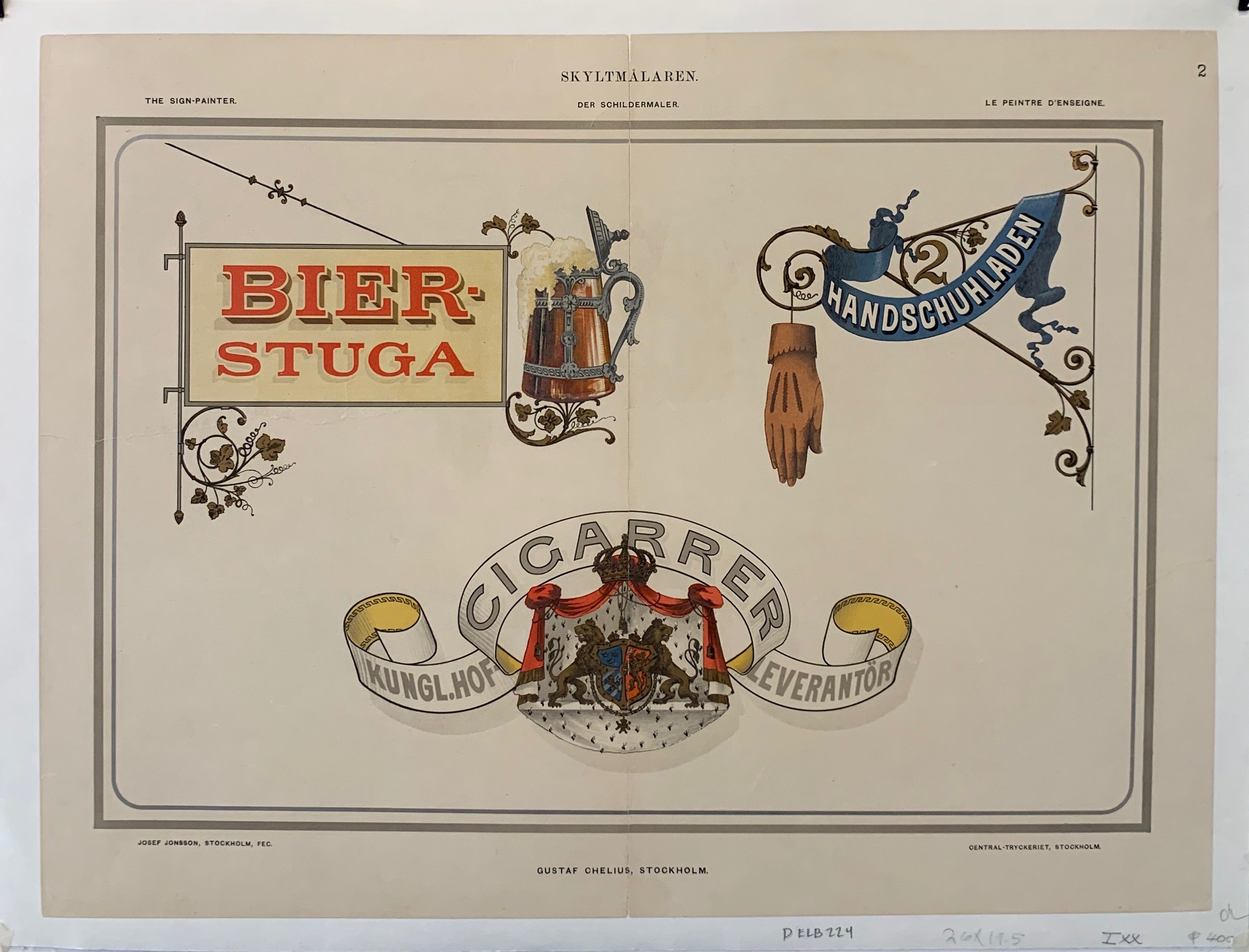 This tryptich of different beer signs can be attributed to Josef Jonsson, Gustaf Chelius, and Central-Tryckeriet, respectively.