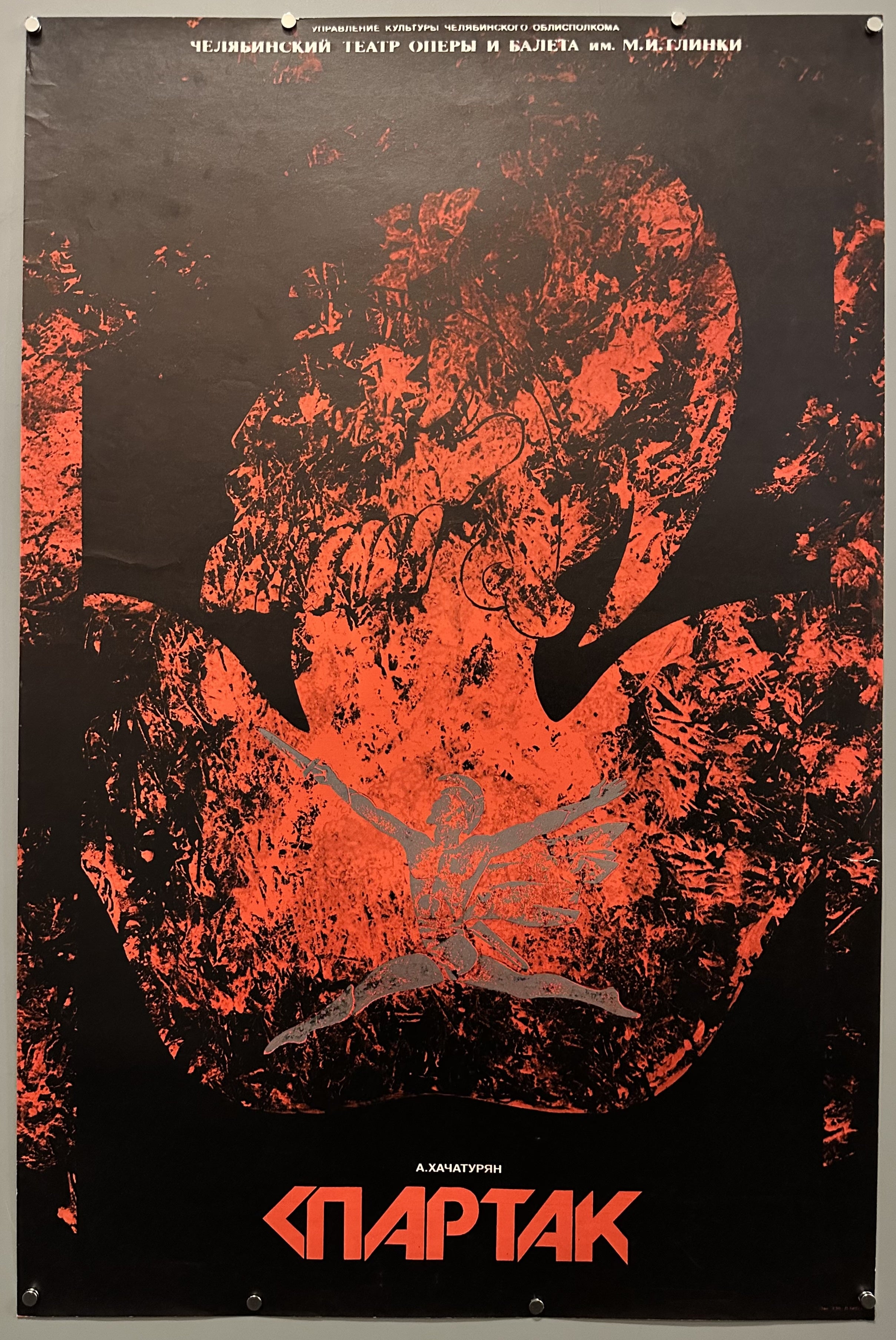 Original Soviet-era poster for the ballet Spartacus by Aram Khachaturian, performed at the Chelyabinsk Theatre of Opera and Ballet.