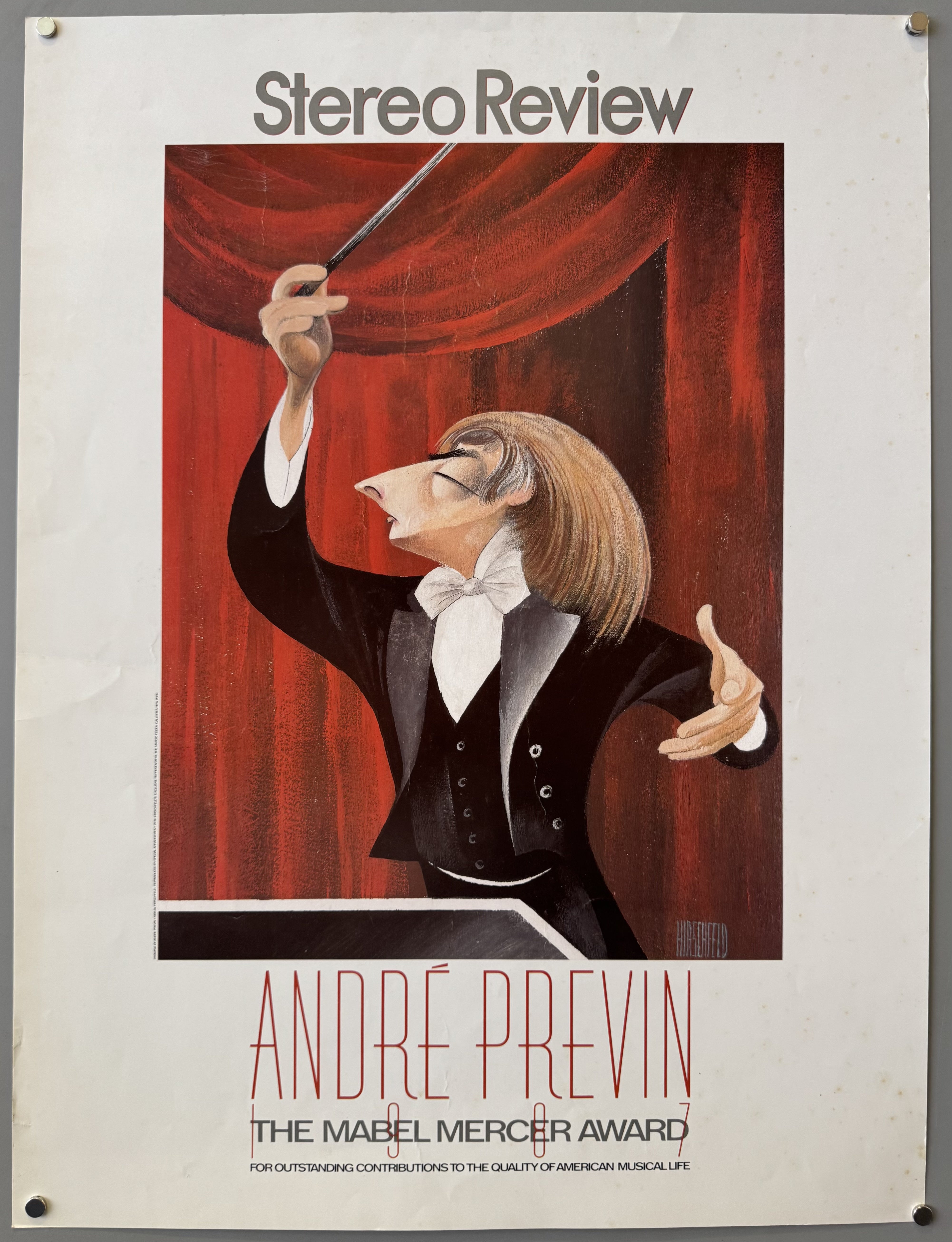 Original poster for the Mabel Mercer Award presented by Stereo Review magazine to André Previn for his contributions to American musical life. Previn was a highly versatile German-American musician, known as a conductor, jazz pianist, and composer of film, classical, and jazz music.