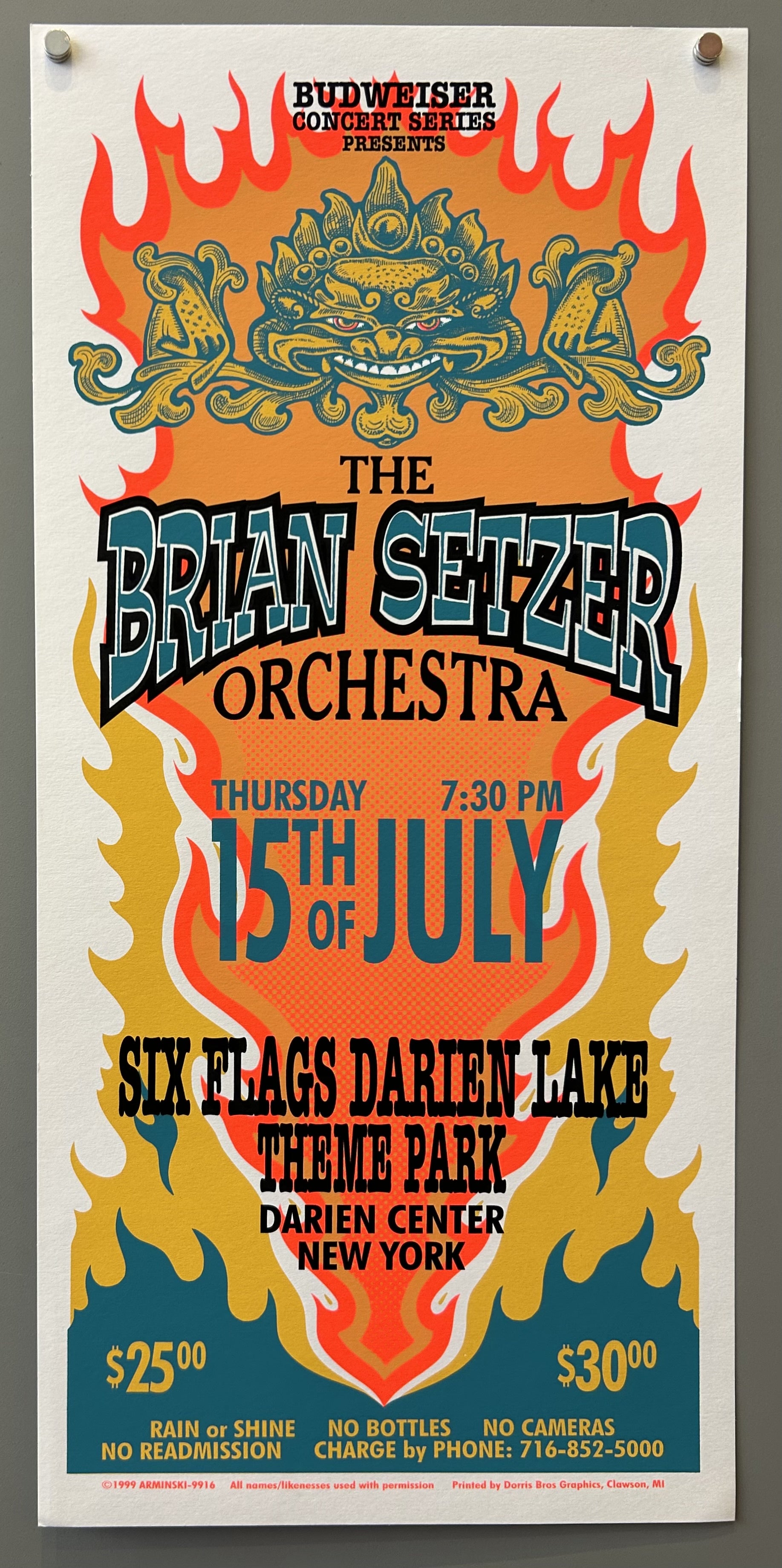 Psychedelic poster promoting a concert in Darien Center's Six Flags in New York.