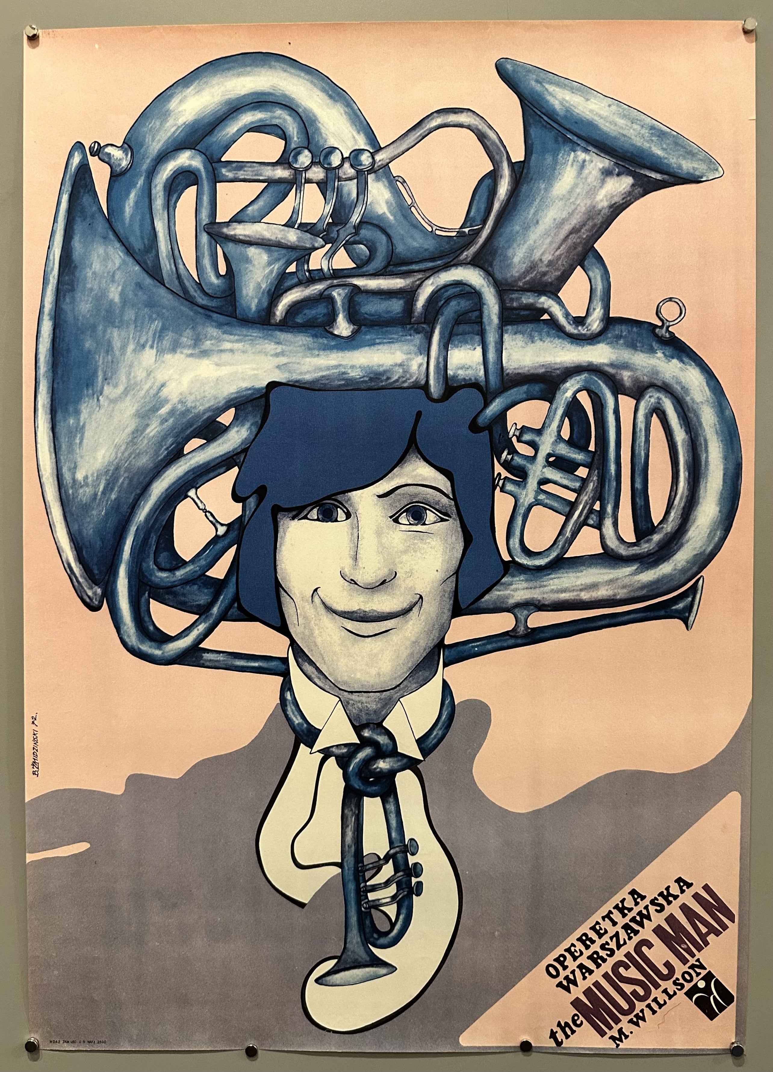 Polish theater poster for a live performance of Meredith Willson's musical The Music Man. Performed at the Operetka Warszawska (Warsaw Operetta).