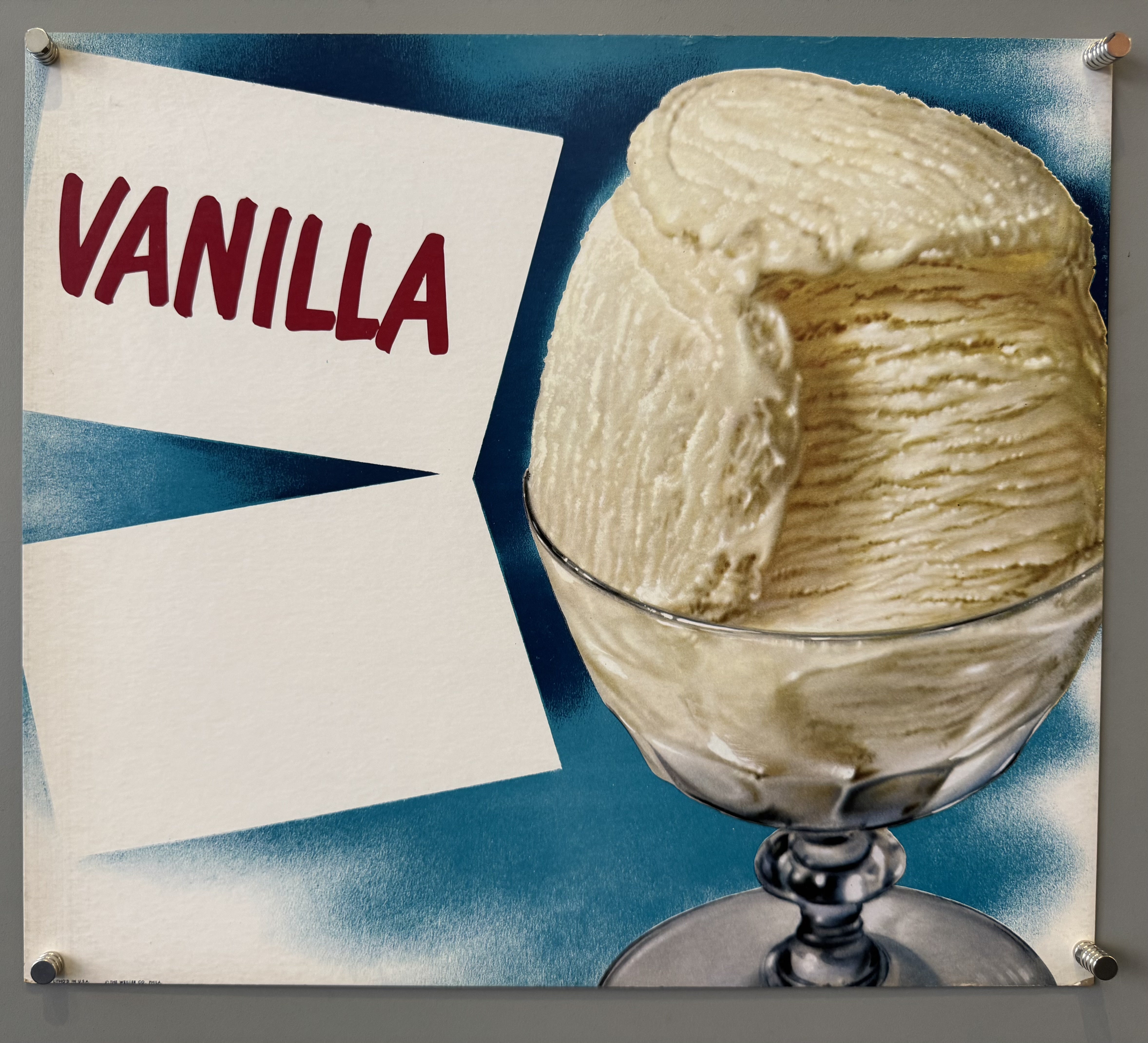 Mid-century print of ice cream used for signage at shops and ice cream parlors.