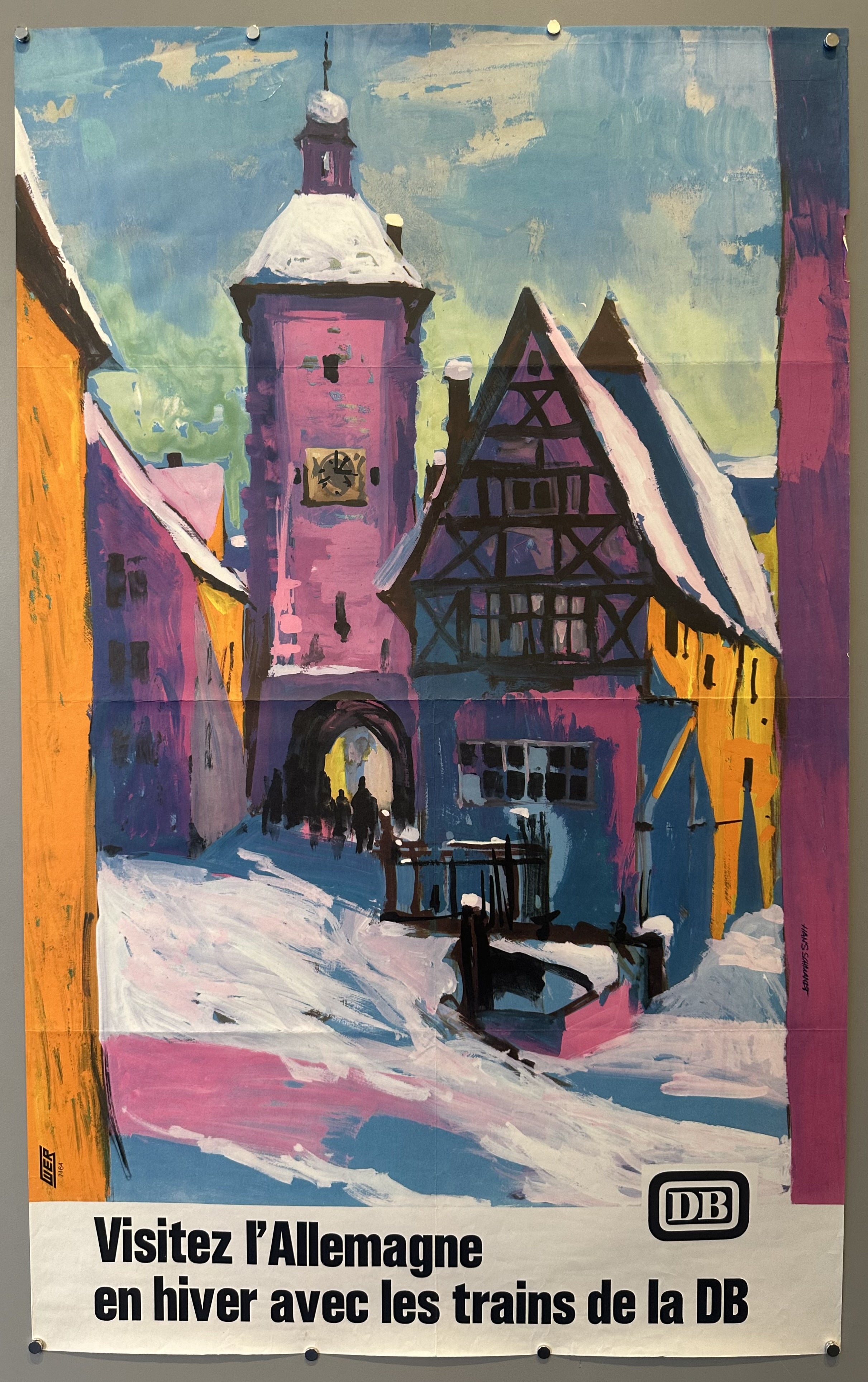 Original mid-century modern poster advertising travel using Deutsche Bahn trains.