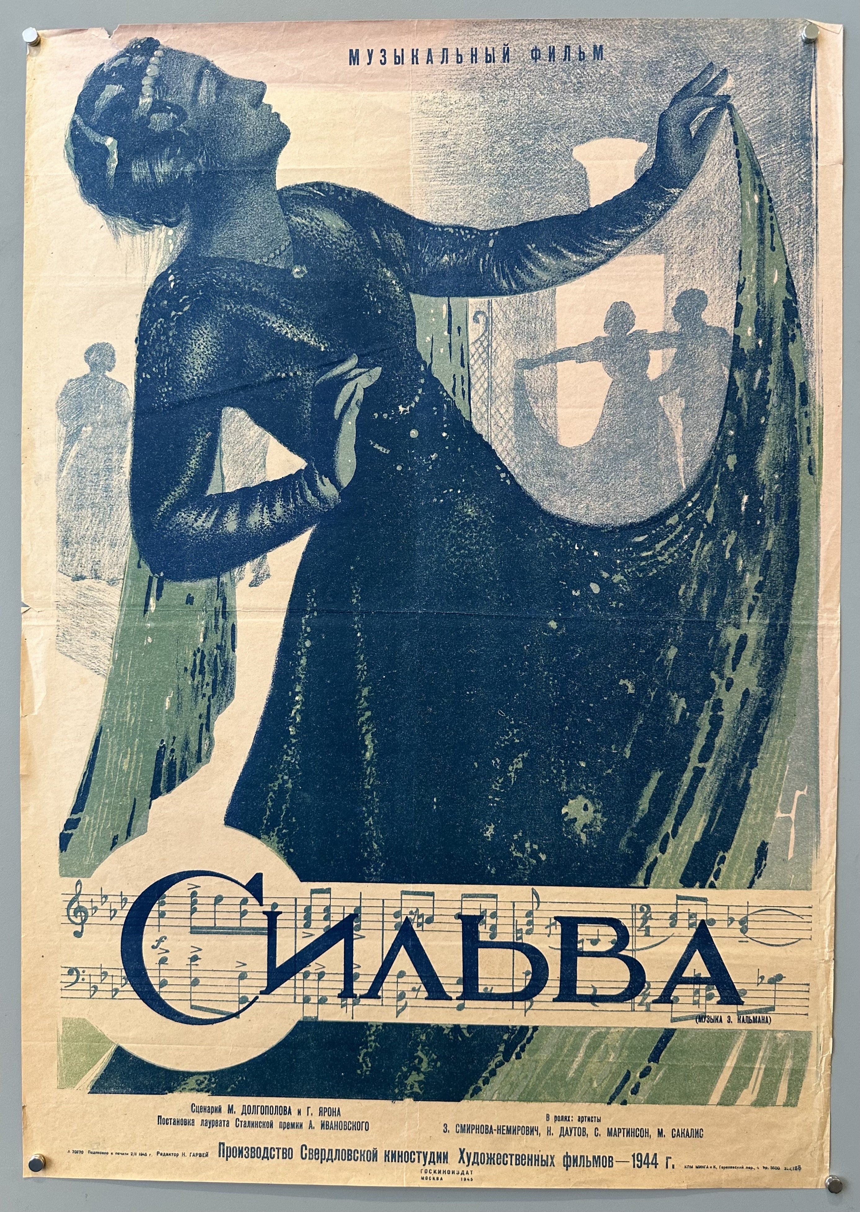 A Russian film poster for the adaptation of the 1915 operetta Die Csárdásfürstin (also known as Silva) composed by Emmerich Kalman.