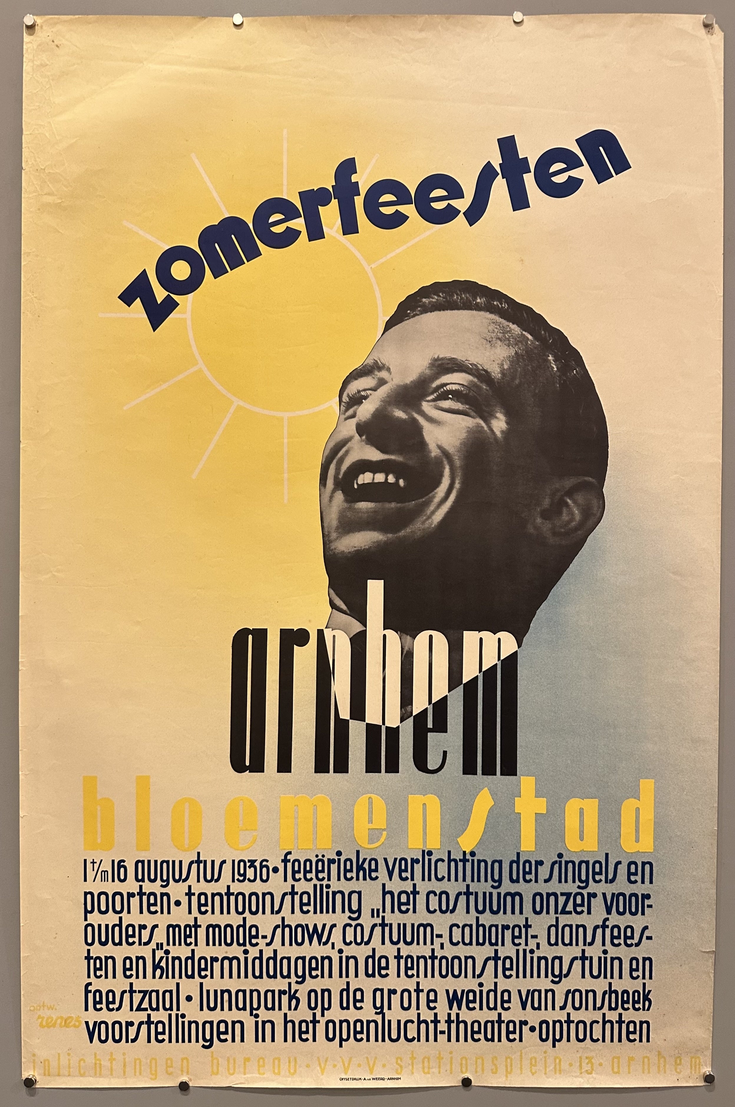 250-500 advertisement art deco festival german medium original poster poster size-40x26 smile summer sunny sunshine typography vintage yellow